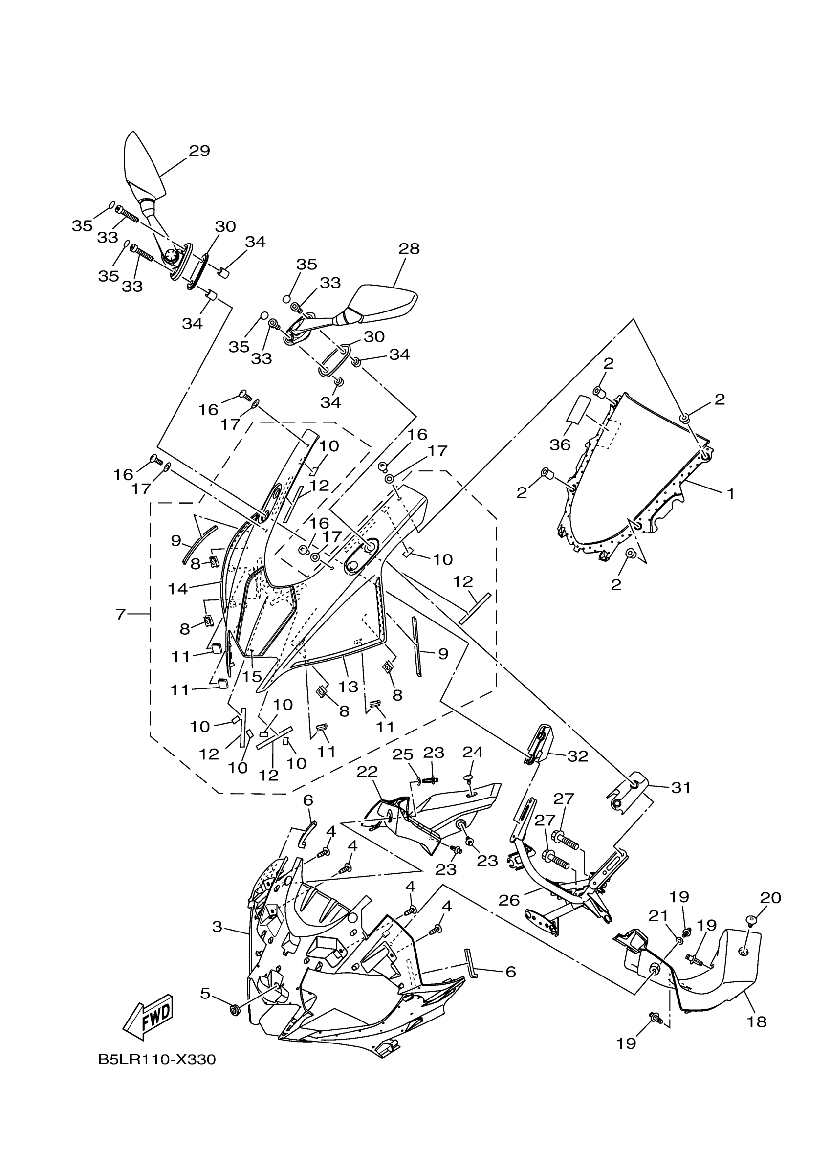 Yamaha YZFR3ANW (YZFR3 ABS WGP 60TH) B5LR 2022 WINDSHIELD Diagram