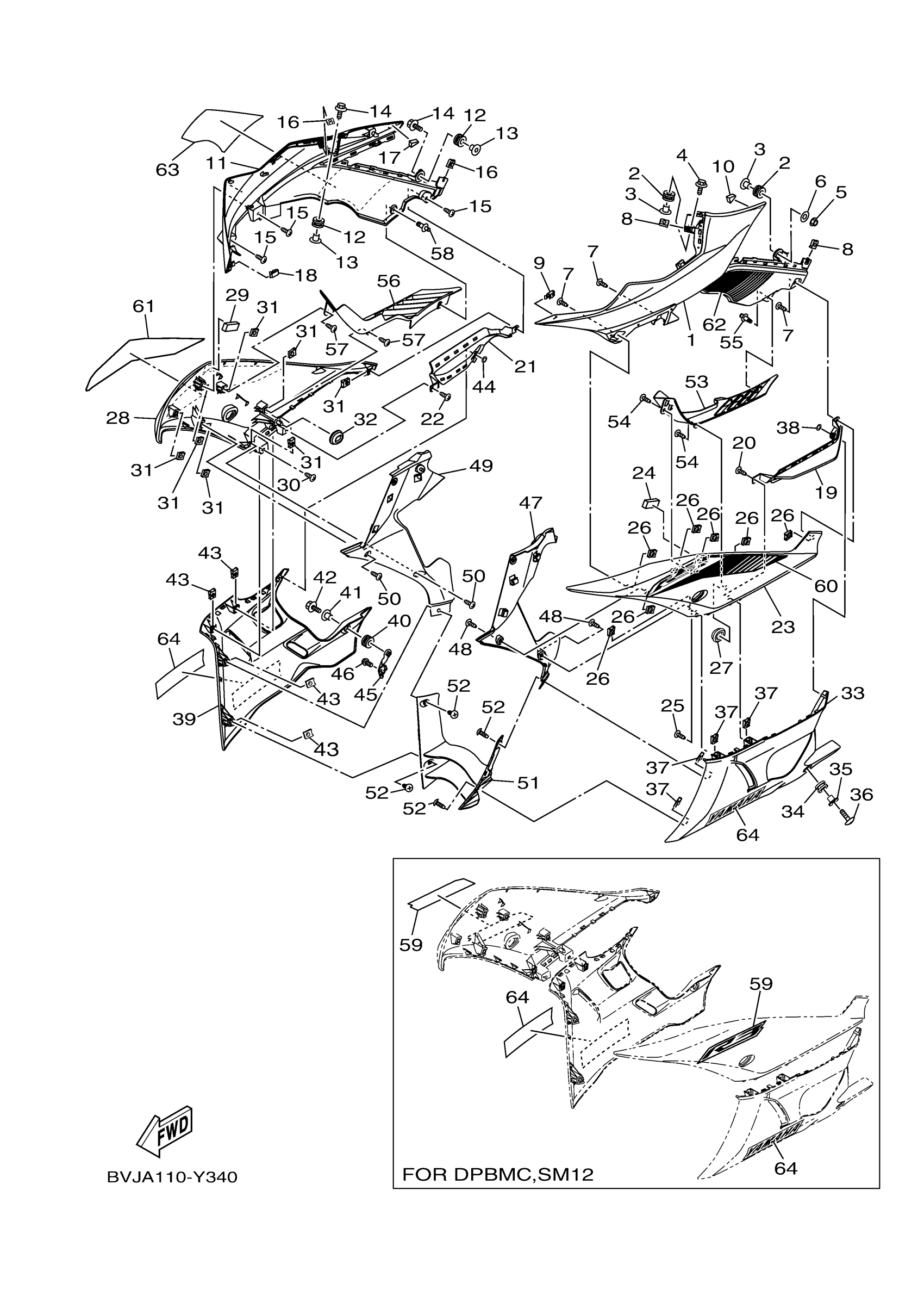 Yamaha YZFR3APP (YZFR3 ABS) BVJA 2023 COWLING 1 Diagram