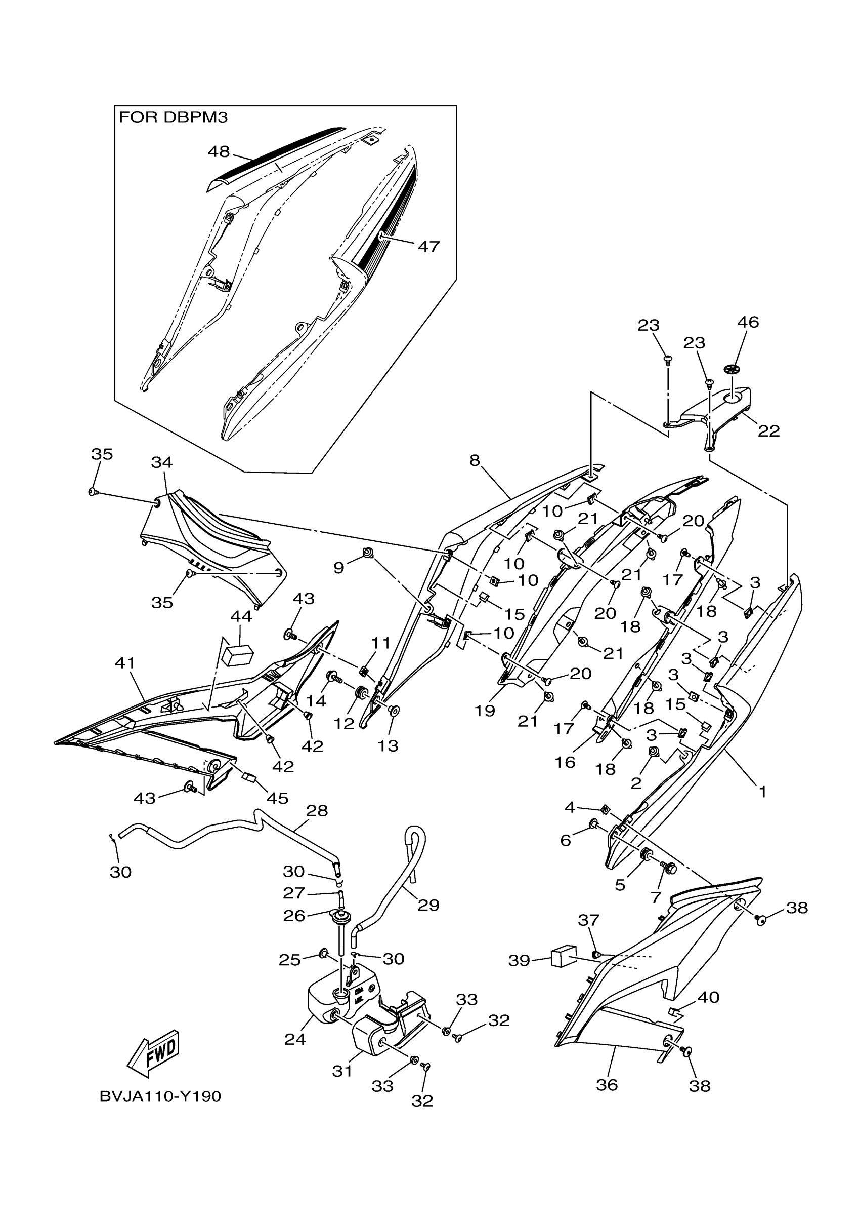 Yamaha YZFR3APP (YZFR3 ABS) BVJA 2023 SIDE COVER Diagram