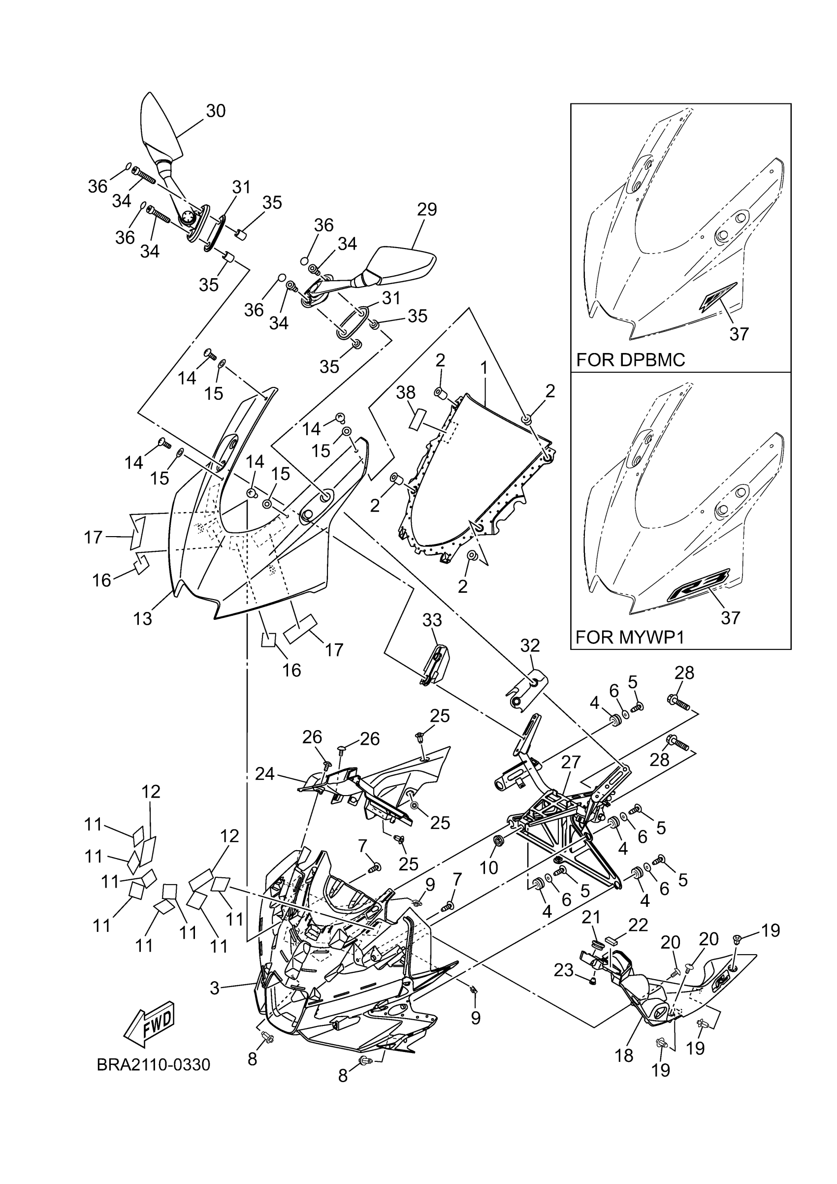 Yamaha YZFR3ASW (YZFR3 ABS) BRA22 2025 WINDSHIELD Diagram