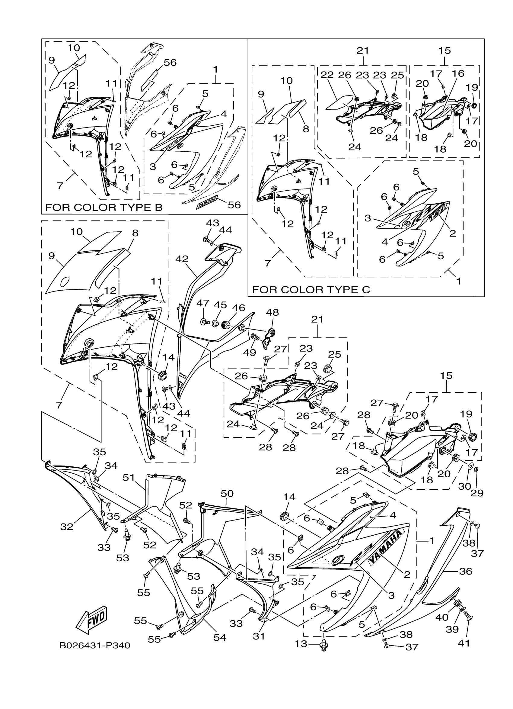 Yamaha YZFR3FR (YZFR3) 2MS11 2015 COWLING 1 Diagram