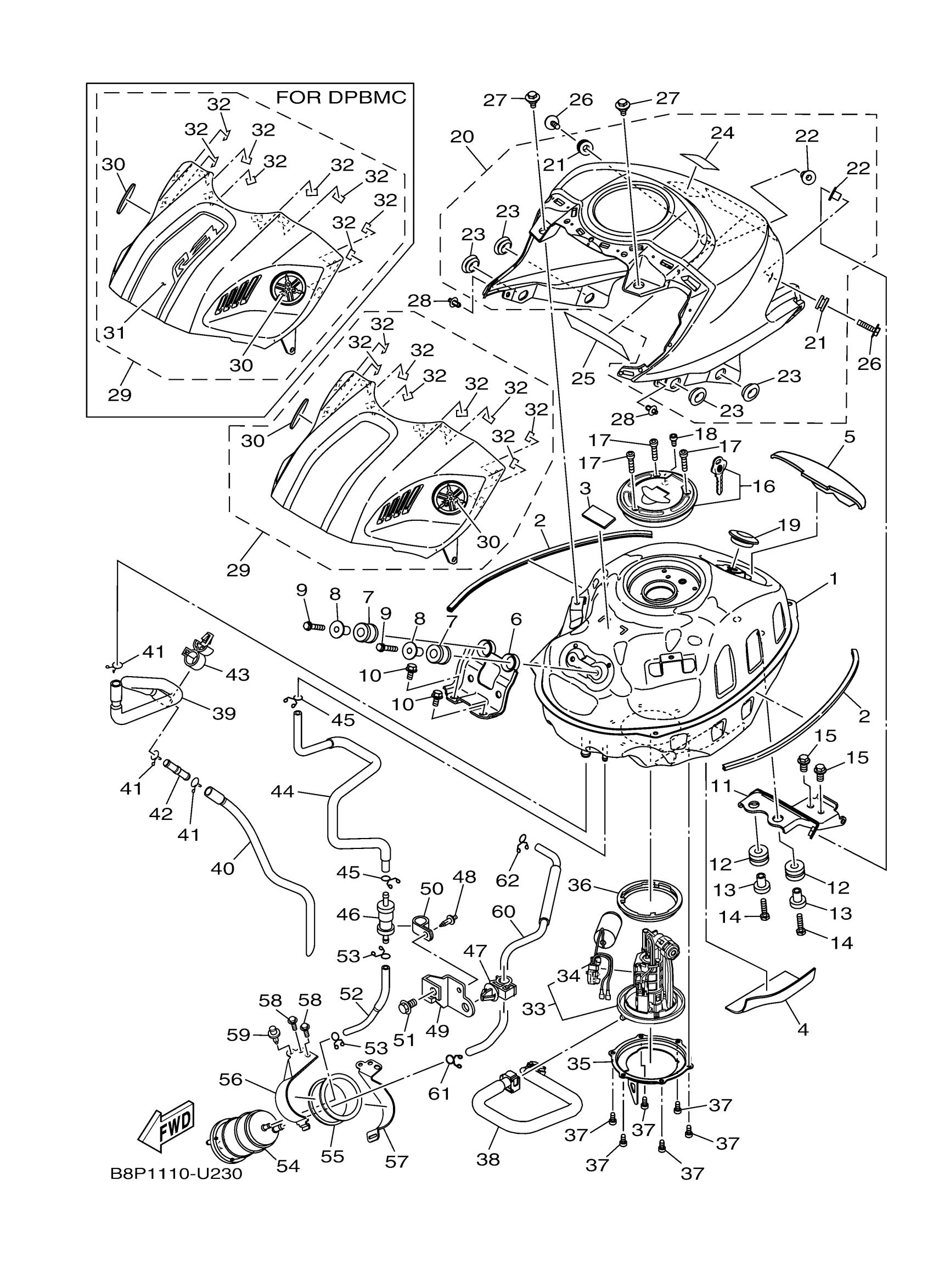 Yamaha YZFR3KL (YZFR3) B8P10 2019 FUEL TANK Diagram