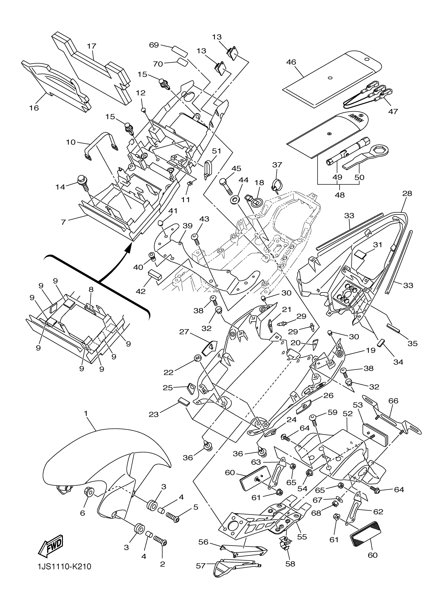 Yamaha YZFR6AL (YZFR6) 1JS10 2011 FENDER Diagram