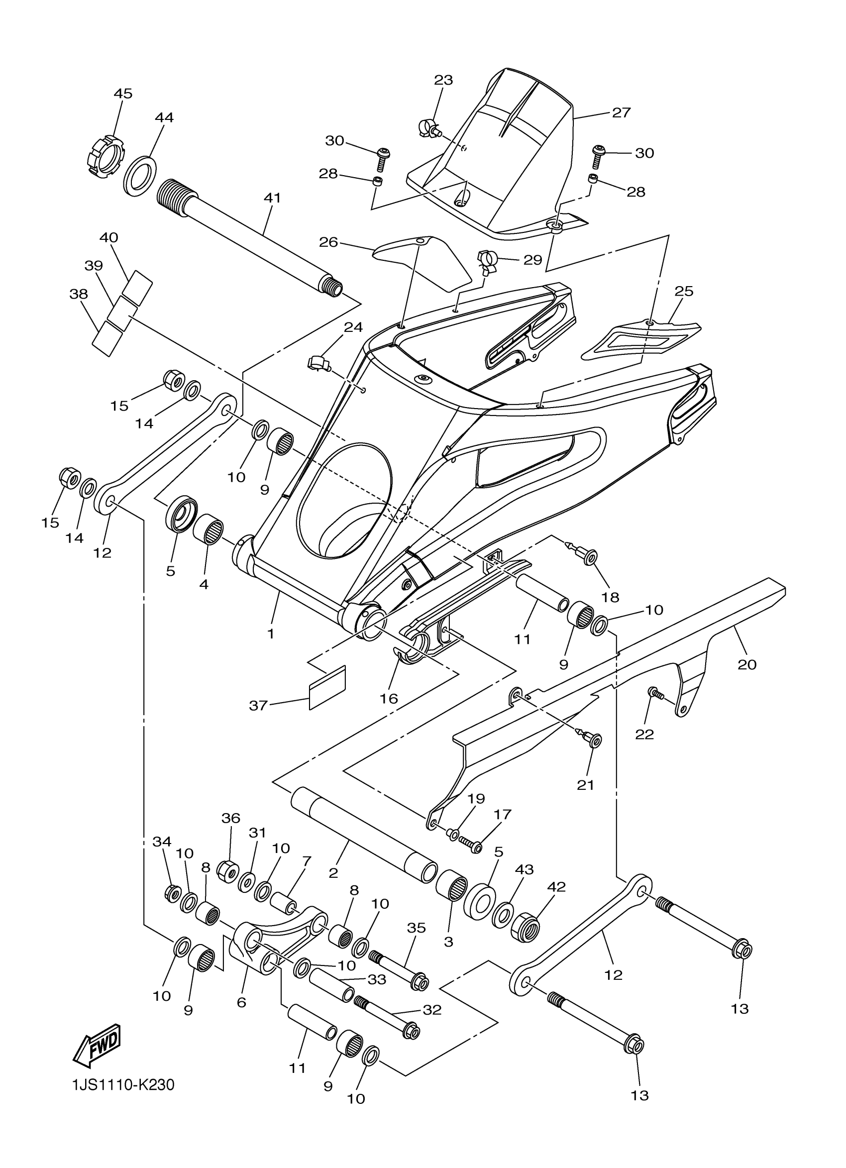 Yamaha YZFR6AL (YZFR6) 1JS10 2011 REAR ARM Diagram