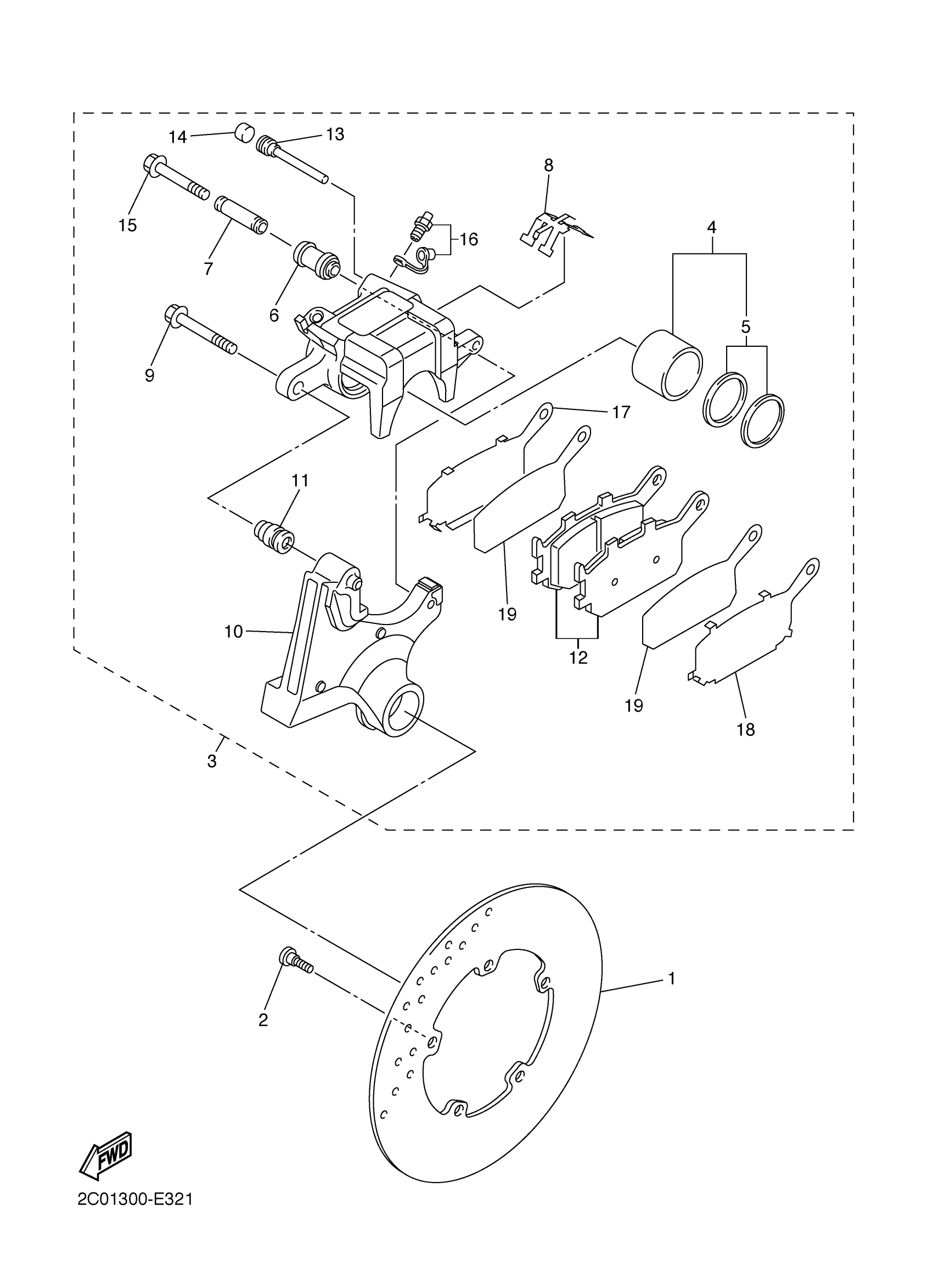 Yamaha YZFR6AL (YZFR6) 1JS10 2011 REAR BRAKE CALIPER Diagram