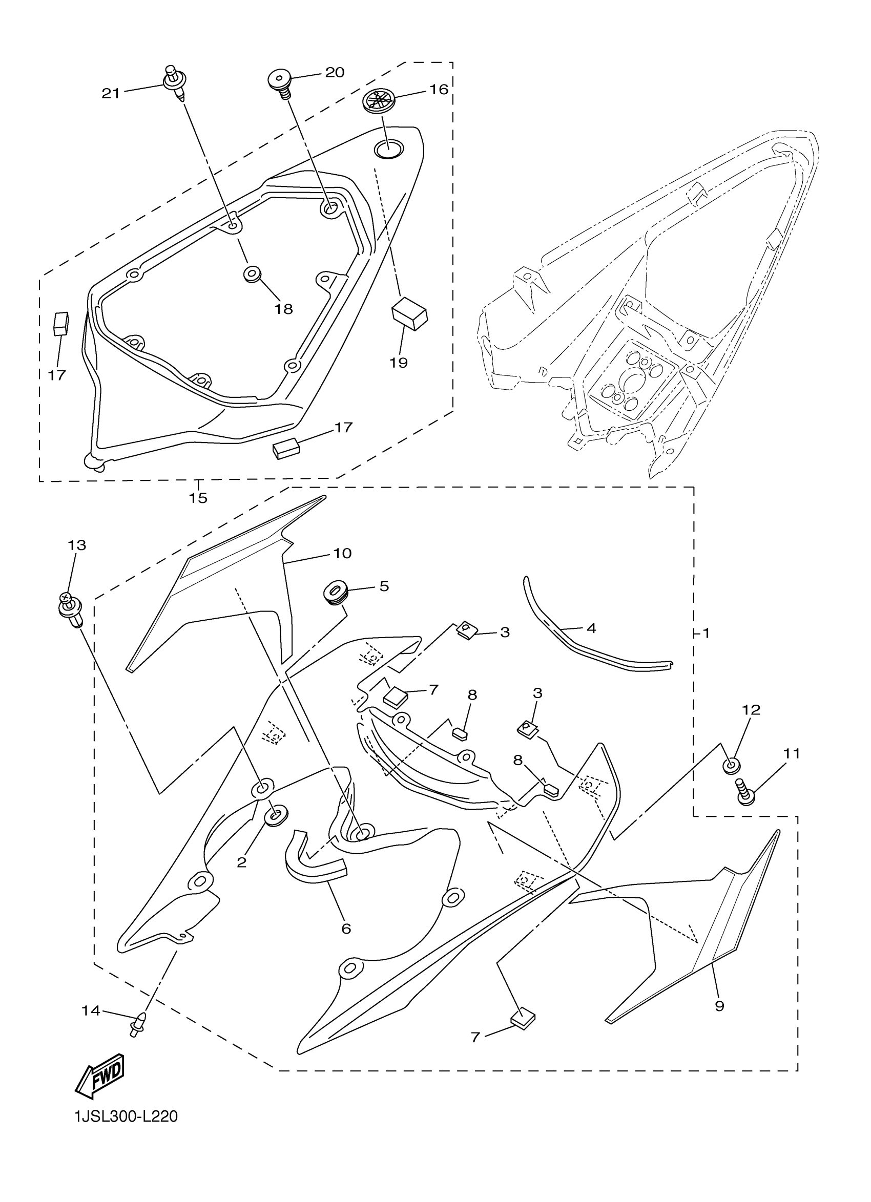 Yamaha YZFR6BGP (YZFR6 WORLD GP 50TH ANNIVERSARY) 1JSP 2012 SIDE COVER Diagram