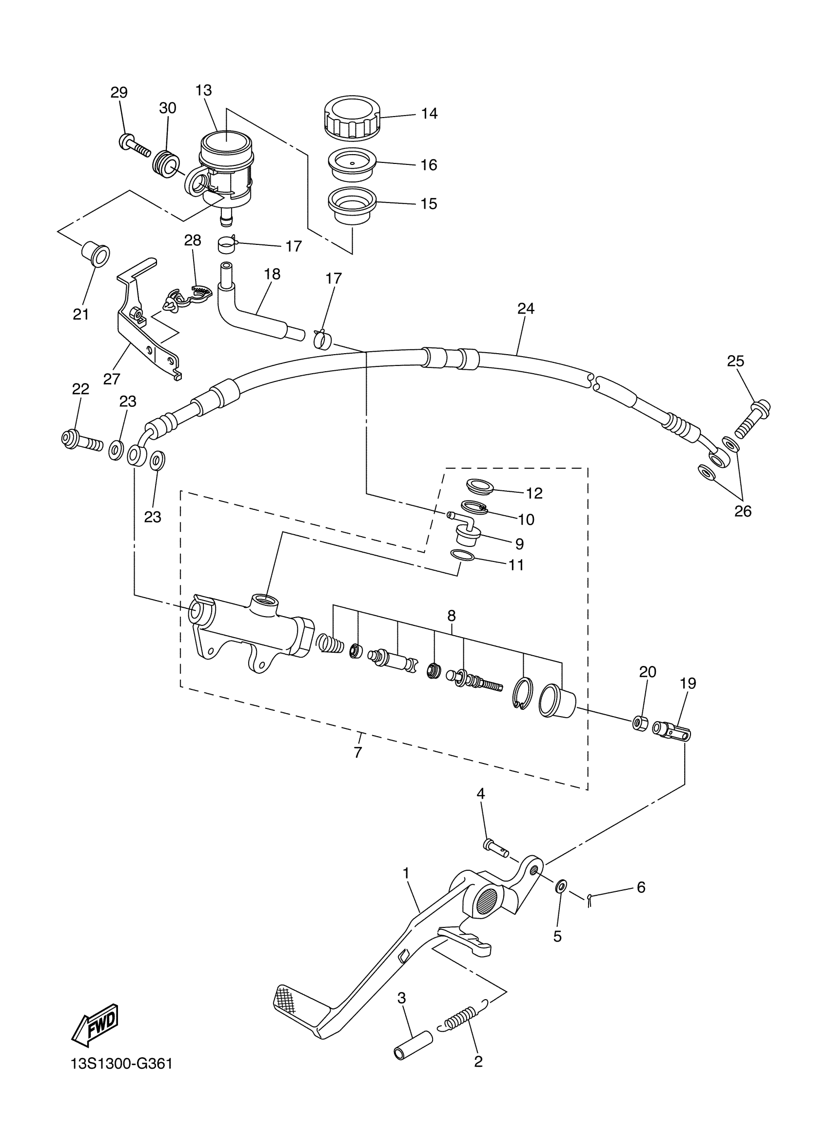 Yamaha YZFR6DR (YZFR6) 2CX11 2013 REAR MASTER CYLINDER Diagram