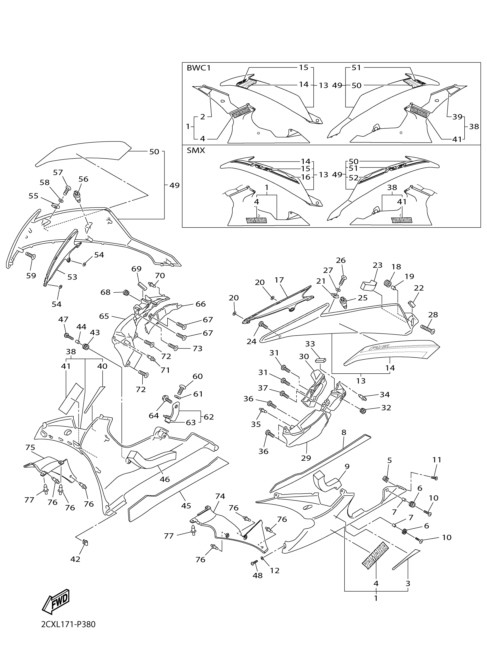 Yamaha YZFR6FW (YZFR6) 2CXJ1 2015 COWLING 2 Diagram