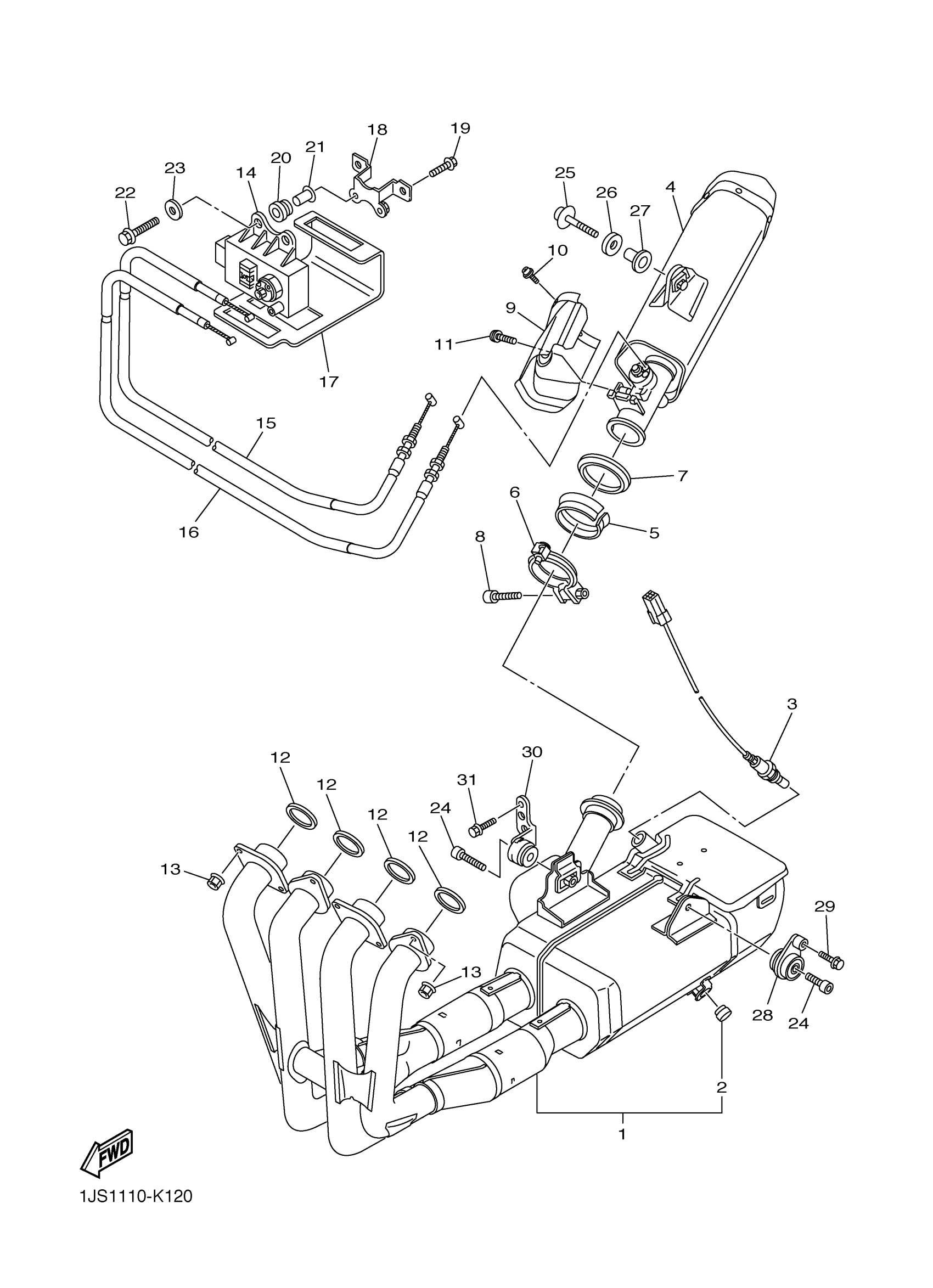 Yamaha YZFR6GL (YZFR6) 2CXS0 2016 EXHAUST Diagram
