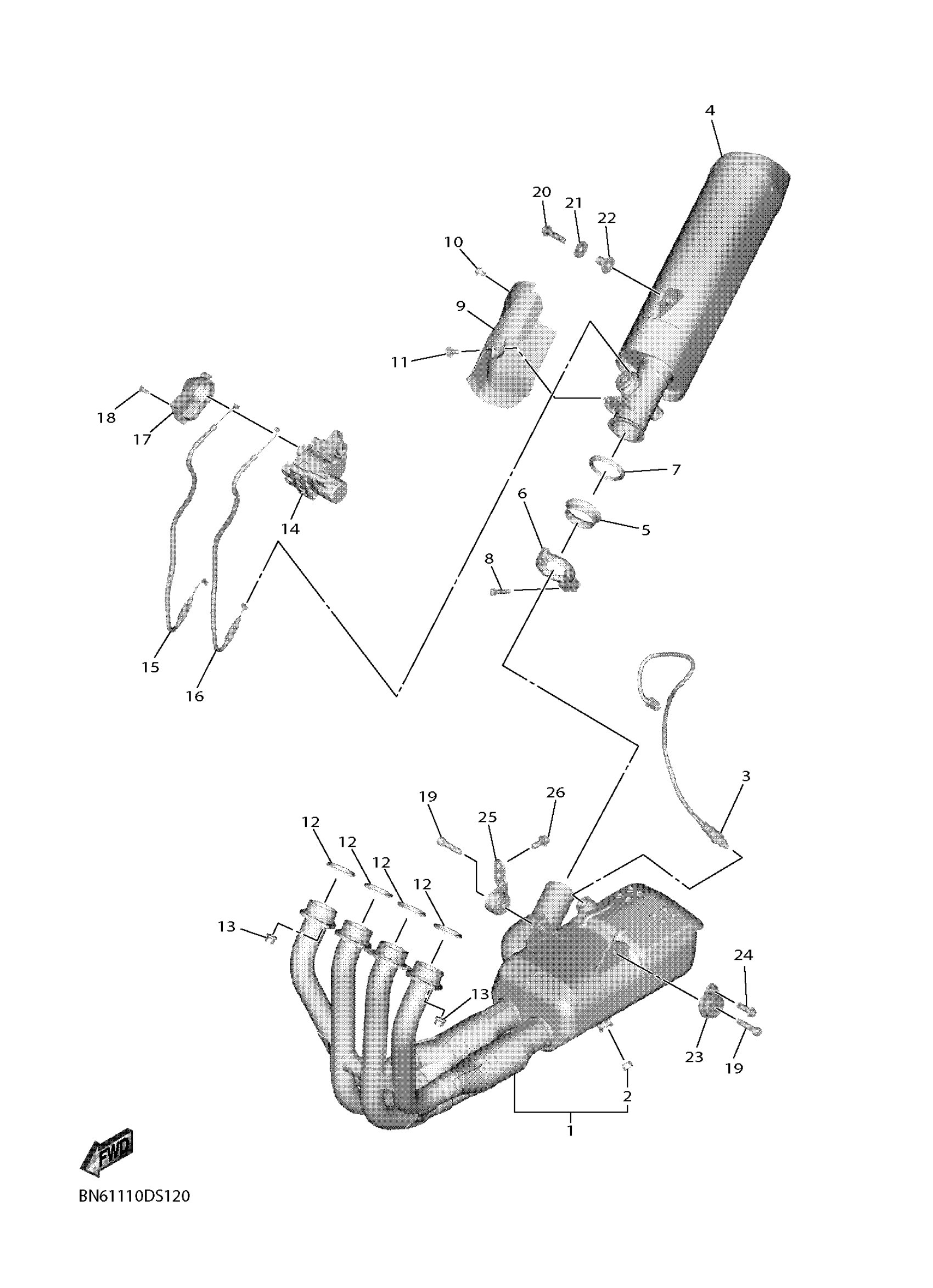 Yamaha YZFR6HW (YZFR6) BN6100 2017 EXHAUST Diagram