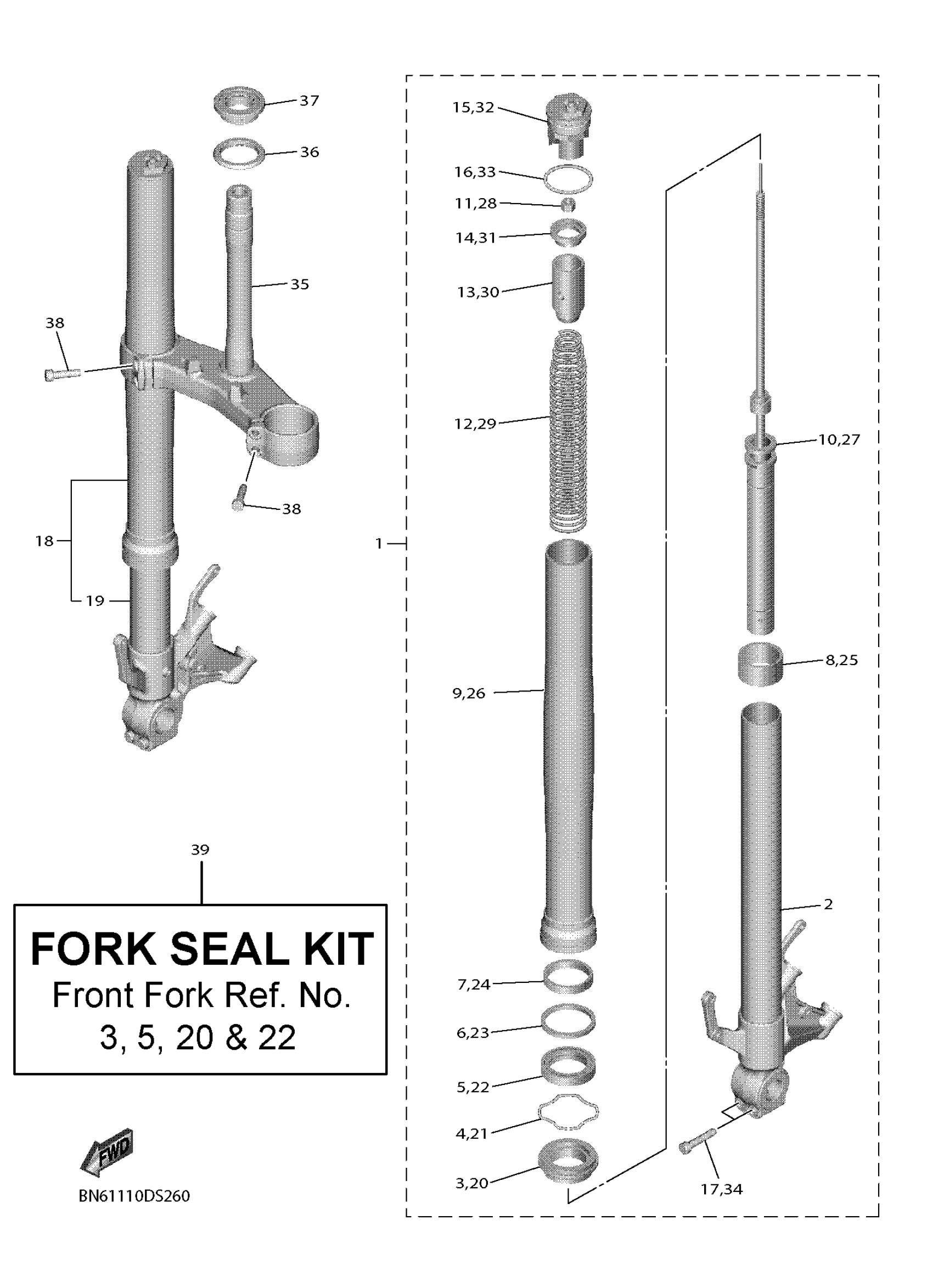 Yamaha YZFR6HW (YZFR6) BN6100 2017 FRONT FORK Diagram