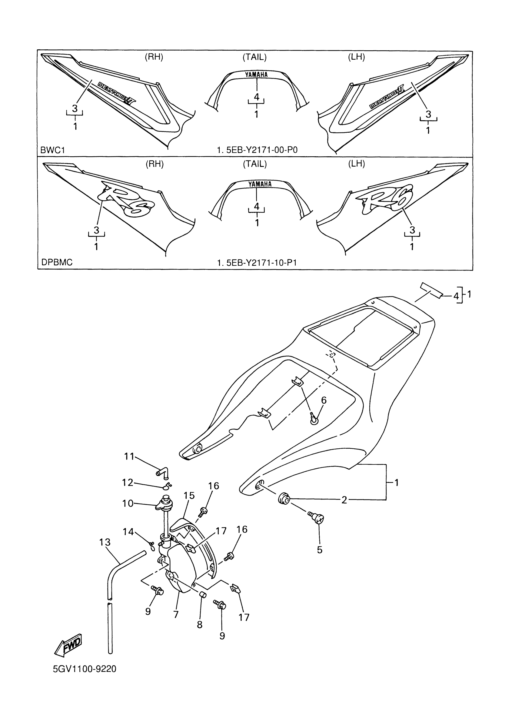 Yamaha YZFR6LC (YZFR6 CA) 5GV12 1999 SIDE COVER Diagram