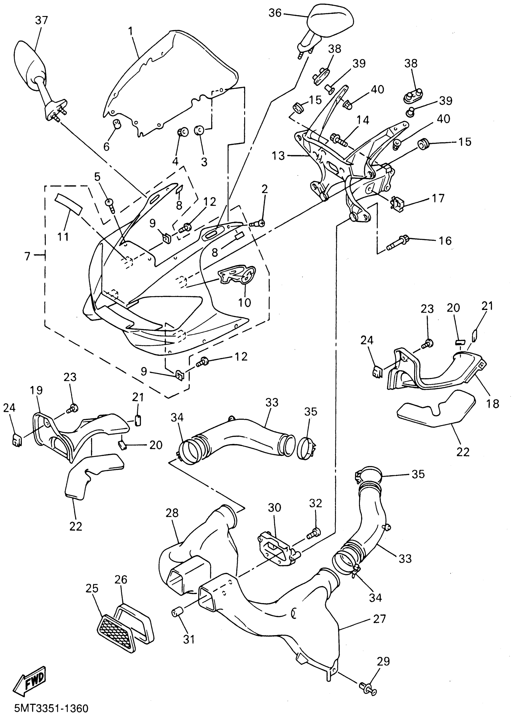 Yamaha YZFR6NC (YZFR6 CA) 5MT6 2001 COWLING 1 Diagram