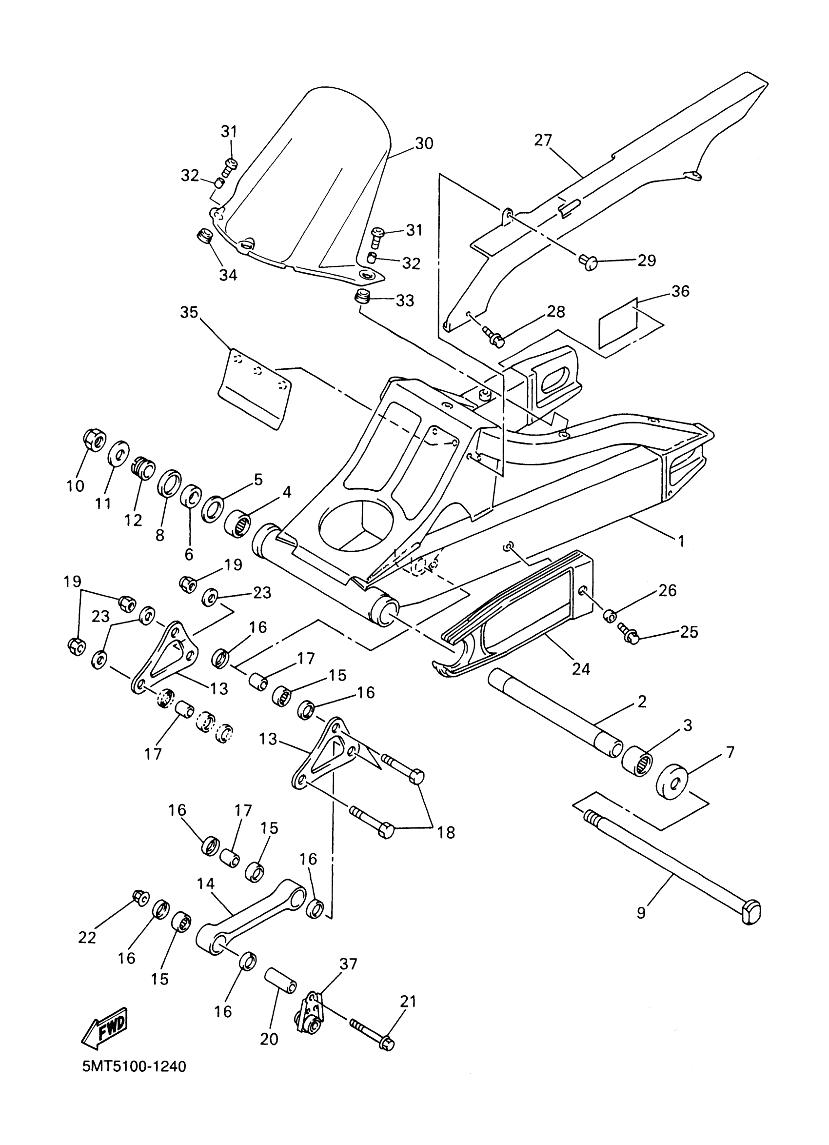 Yamaha YZFR6PC (YZFR6 CA) 5MTG 2002 REAR ARM Diagram