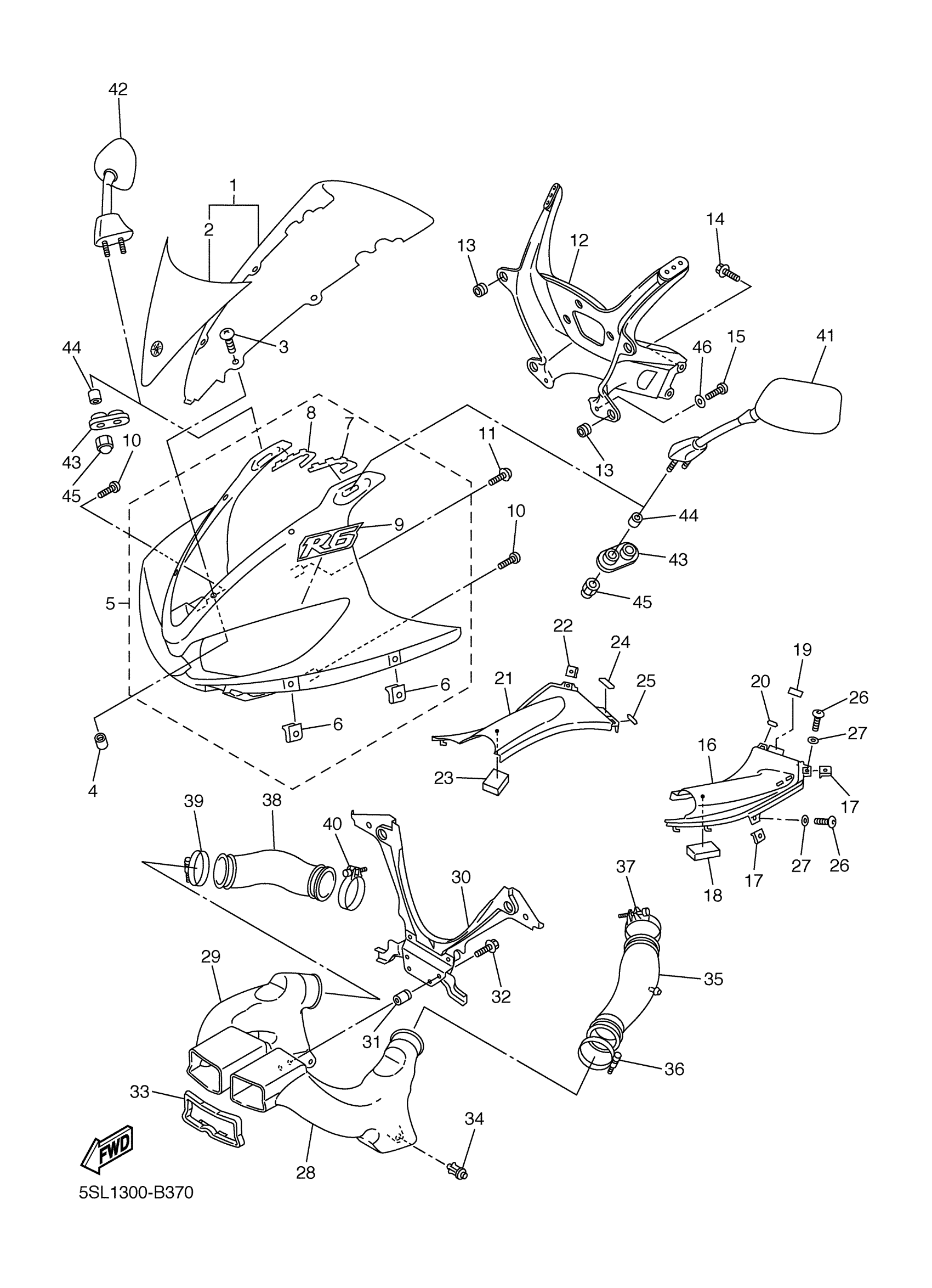 Yamaha YZFR6RC (YZFR6 CA) 5SL4 2003 COWLING 1 Diagram