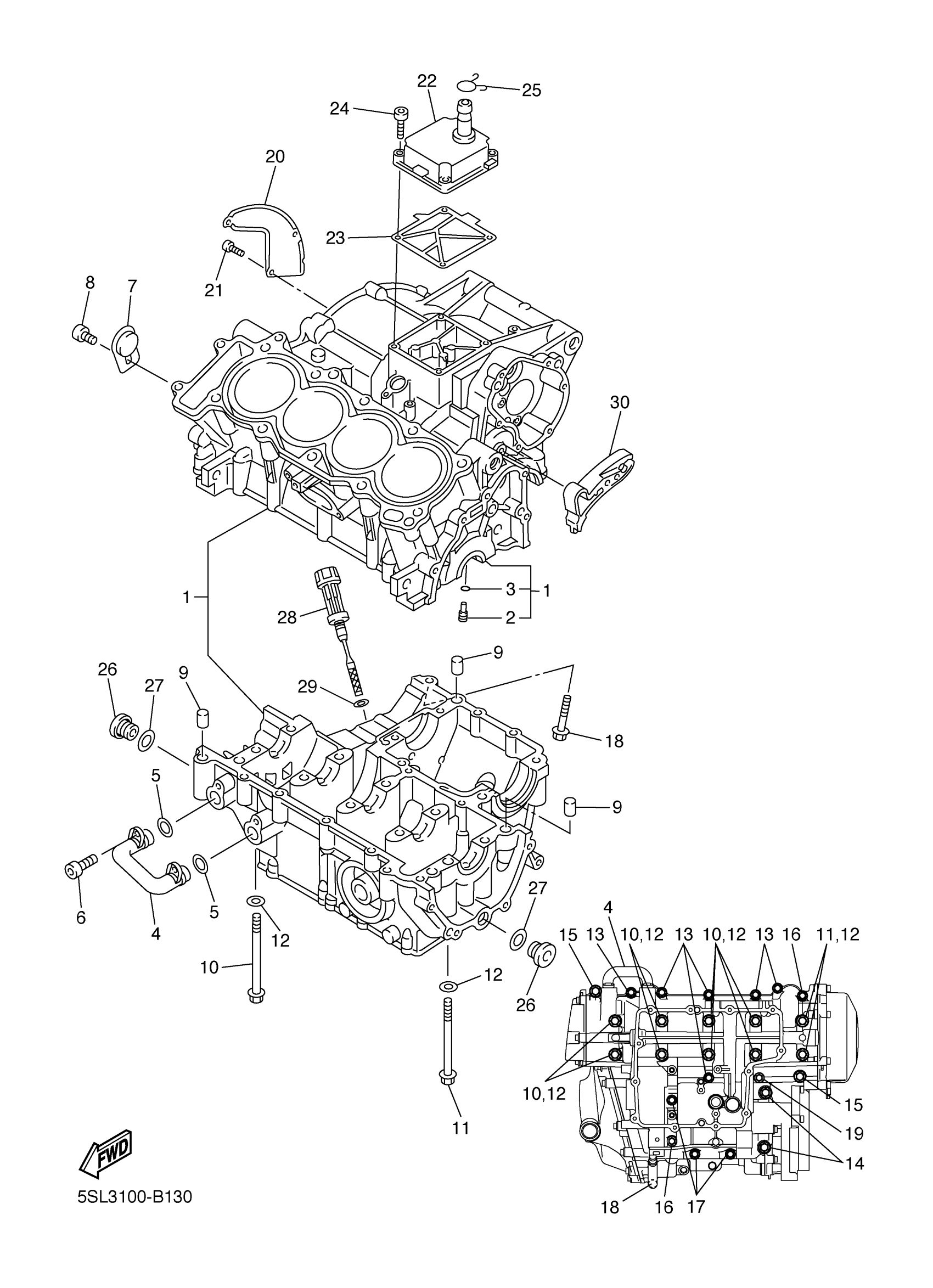 Yamaha YZFR6RC (YZFR6 CA) 5SL4 2003 CRANKCASE Diagram