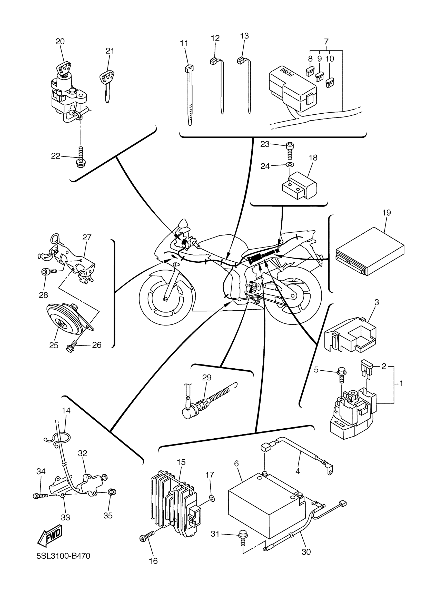 Yamaha YZFR6RC (YZFR6 CA) 5SL4 2003 ELECTRICAL 2 Diagram