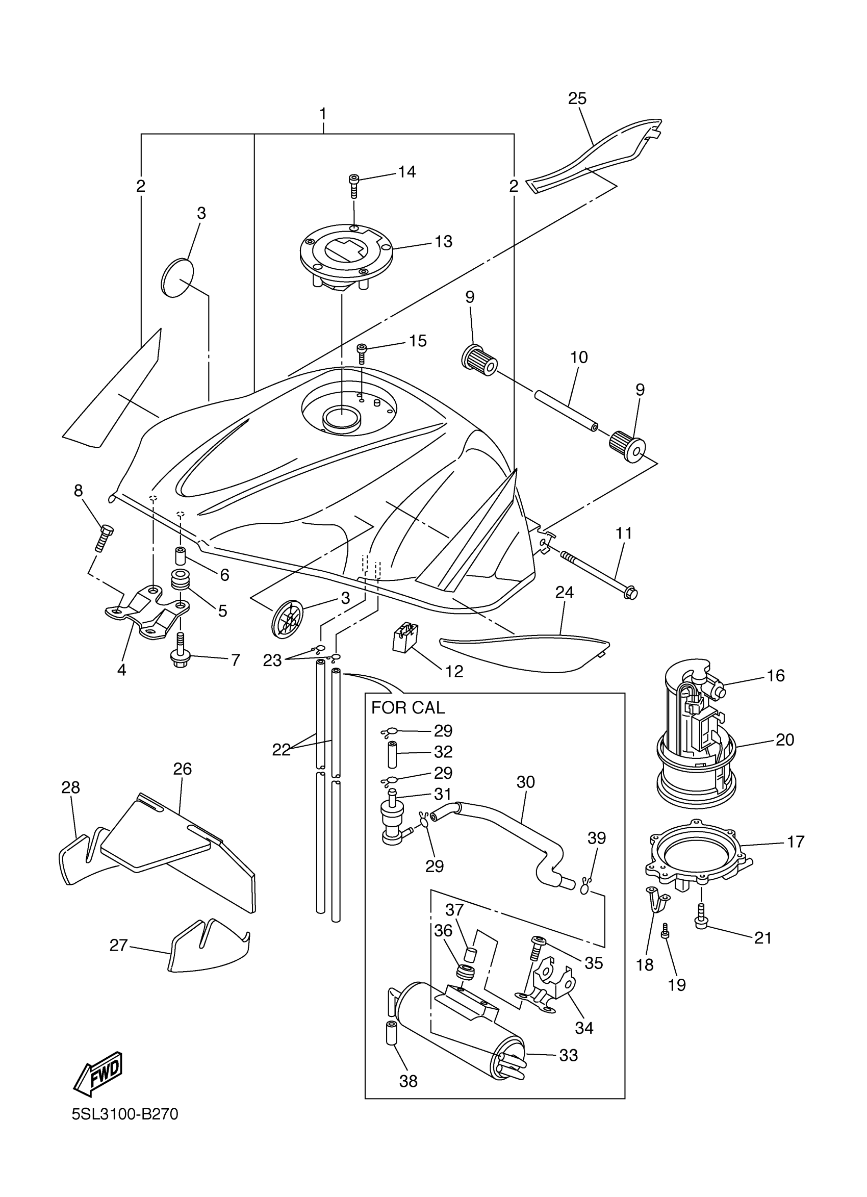 Yamaha YZFR6RC (YZFR6 CA) 5SL4 2003 FUEL TANK Diagram