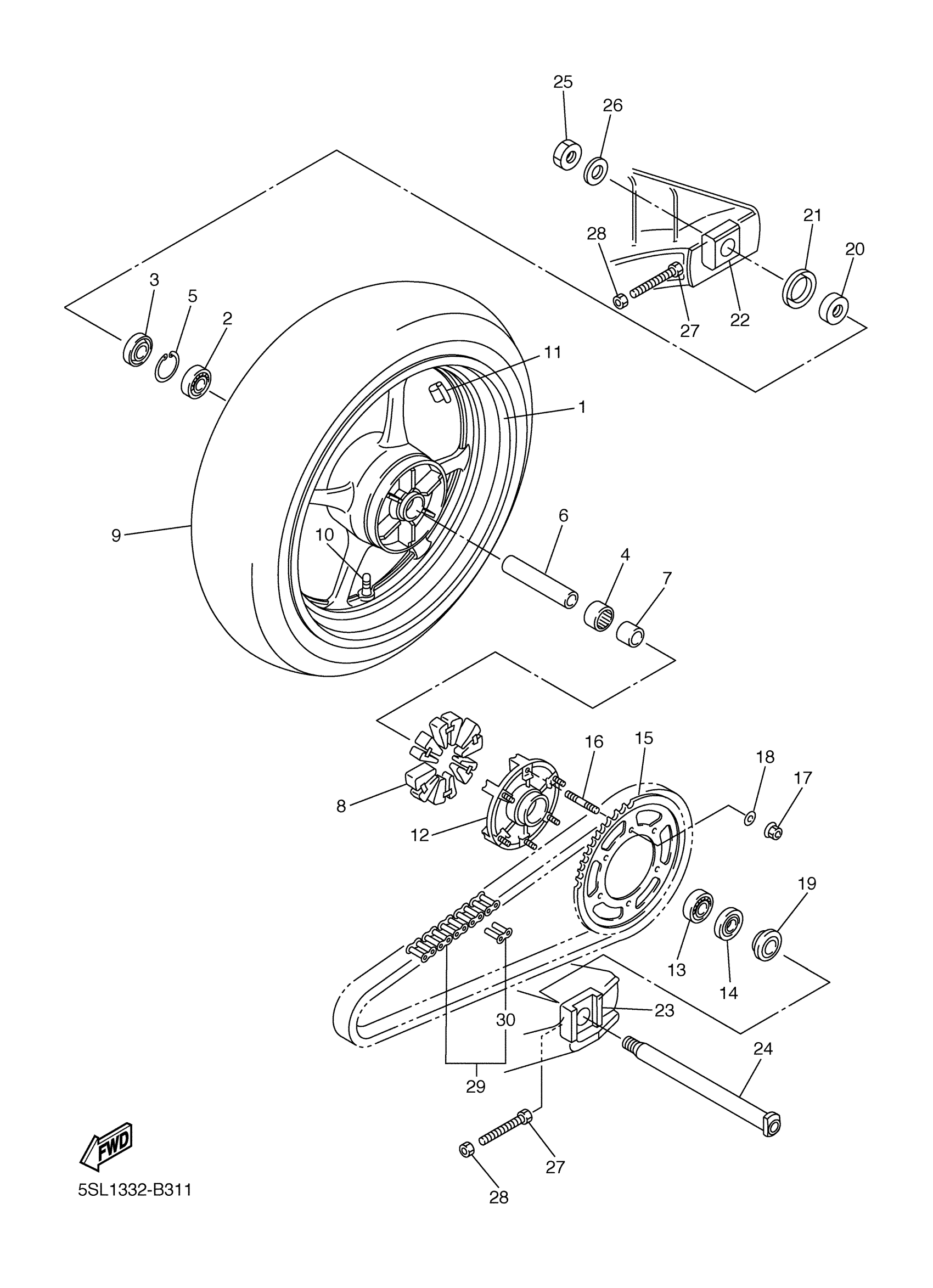 Yamaha YZFR6RC (YZFR6 CA) 5SL4 2003 REAR WHEEL Diagram