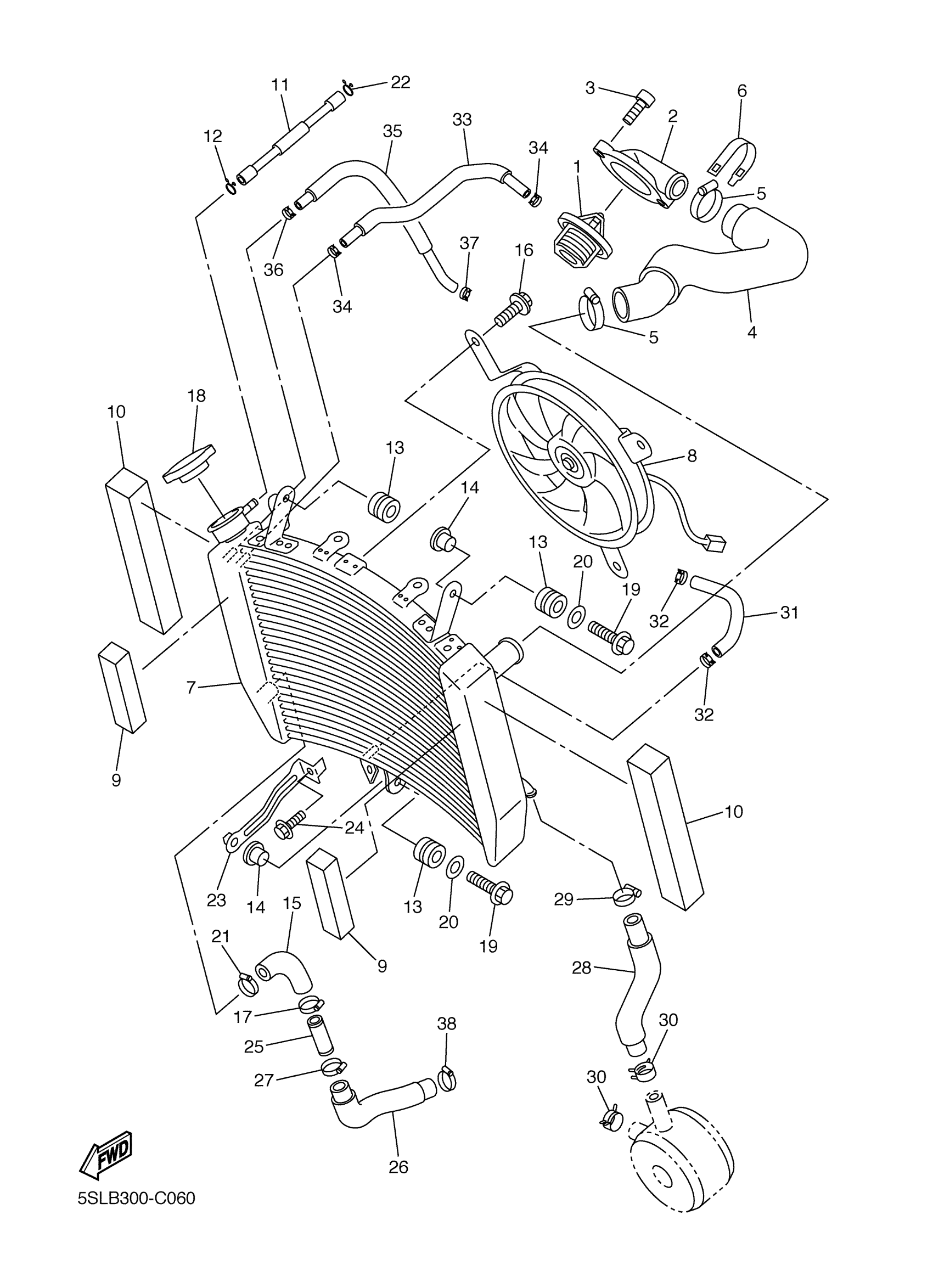 Yamaha YZFR6SC (YZFR6 CA) 5SLE 2004 RADIATOR HOSE Diagram