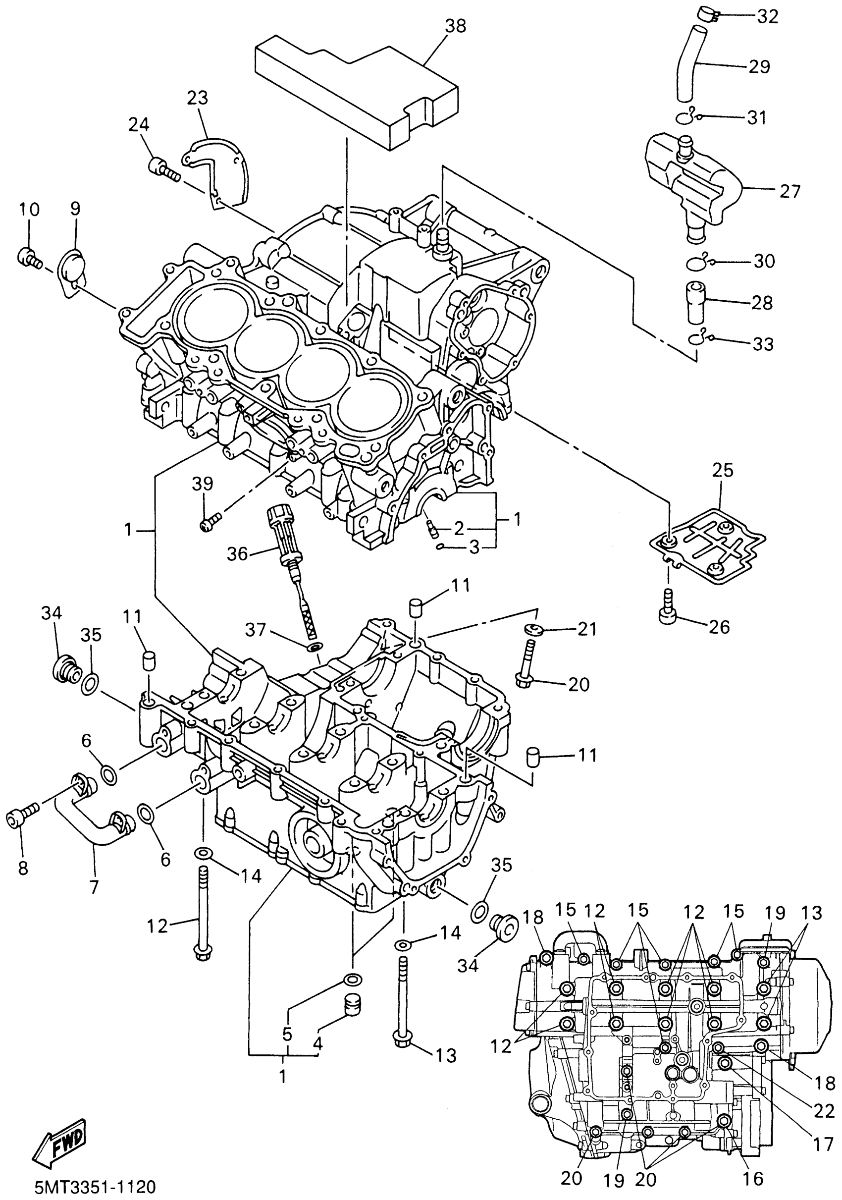 Yamaha YZFR6SNC (YZFR6 CHAMPIONS LIMITED EDITION CA) 5MT9 2001 CRANKCASE Diagram