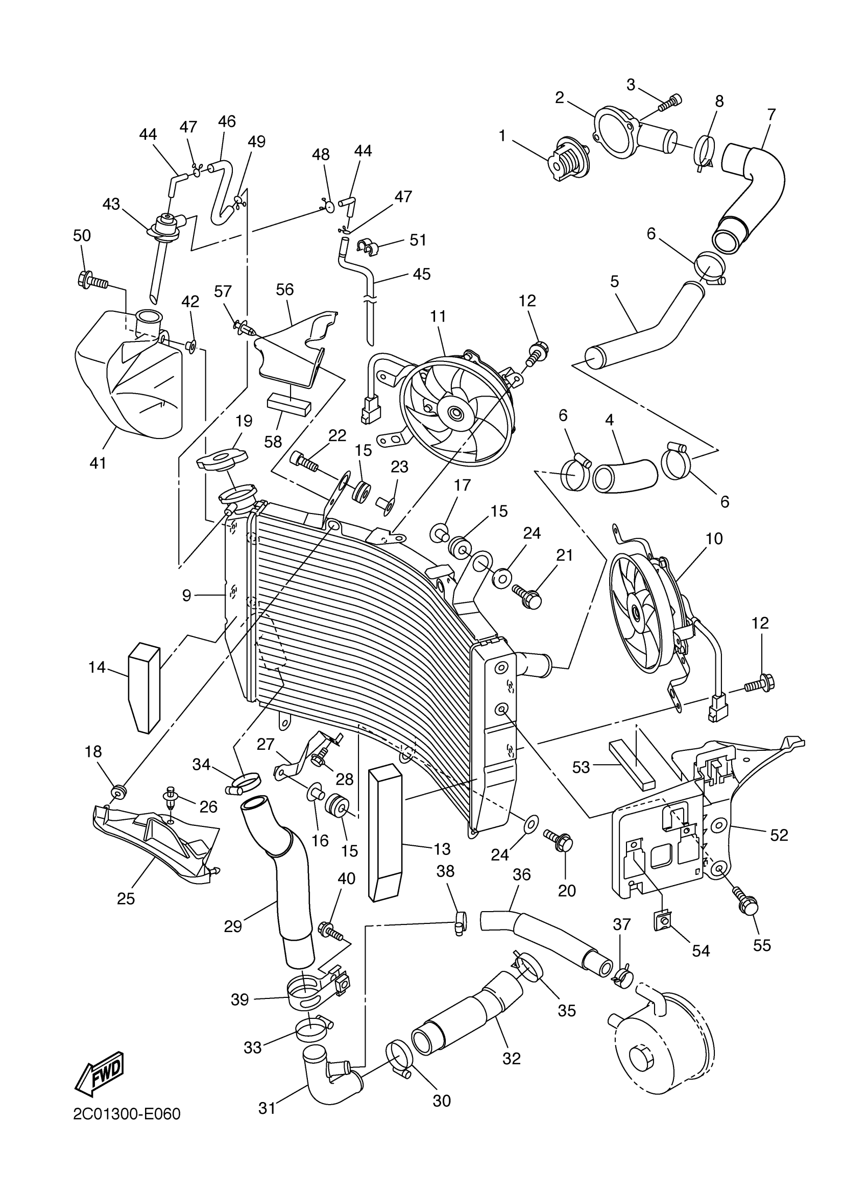 Yamaha YZFR6SPVC (YZFR6 50th Anniversary CA) 2C09 2006 RADIATOR HOSE Diagram