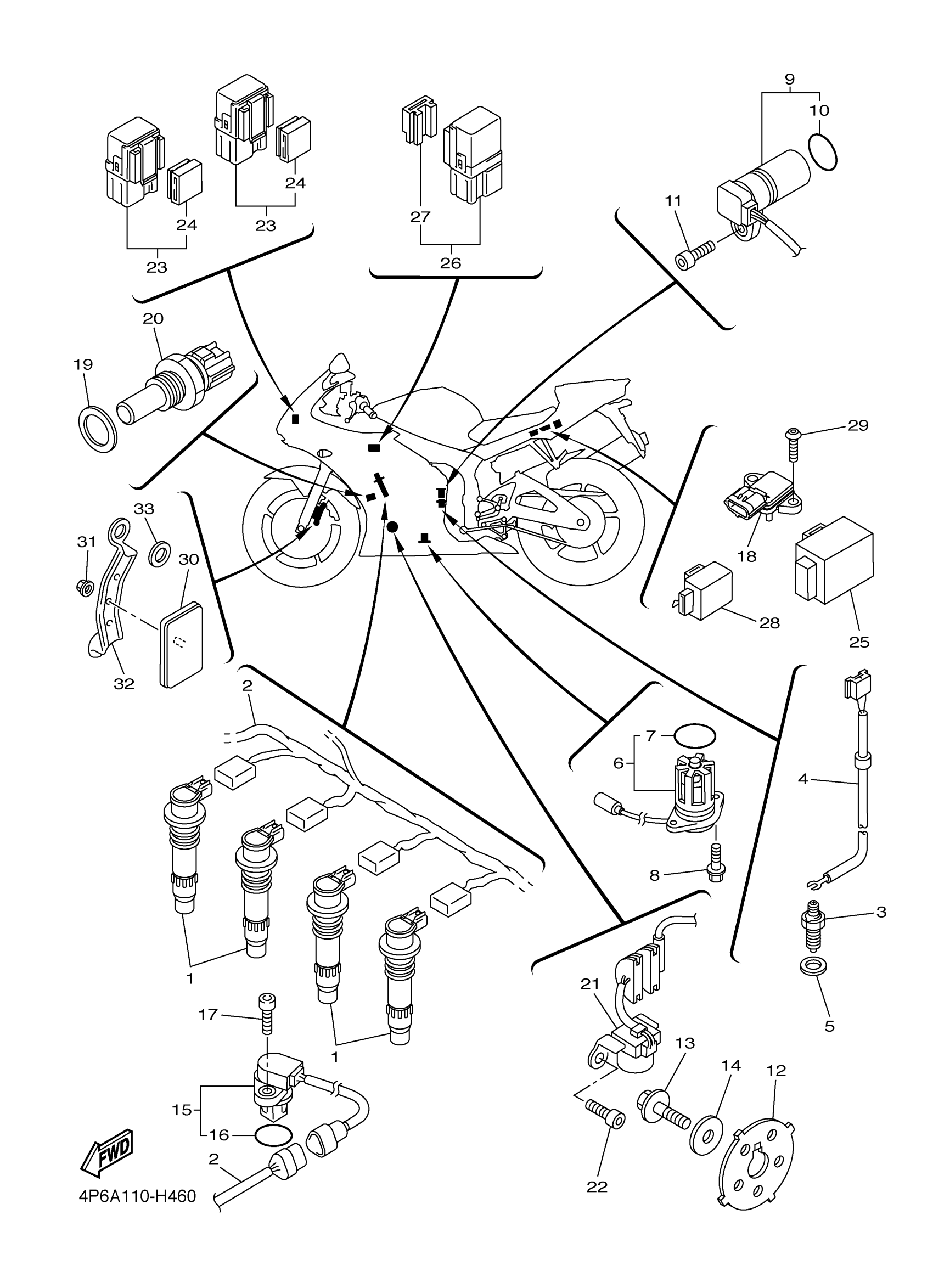 Yamaha YZFR6SYL (YZFR6S) 4P6A 2009 ELECTRICAL 1 Diagram