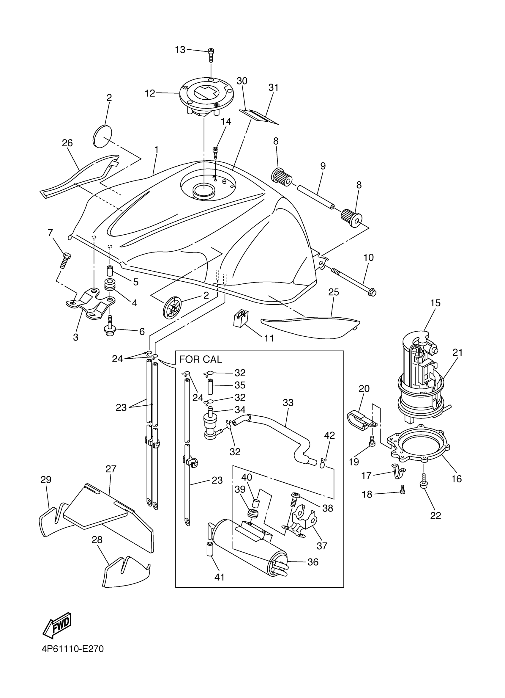 Yamaha YZFR6SYL (YZFR6S) 4P6A 2009 FUEL TANK Diagram