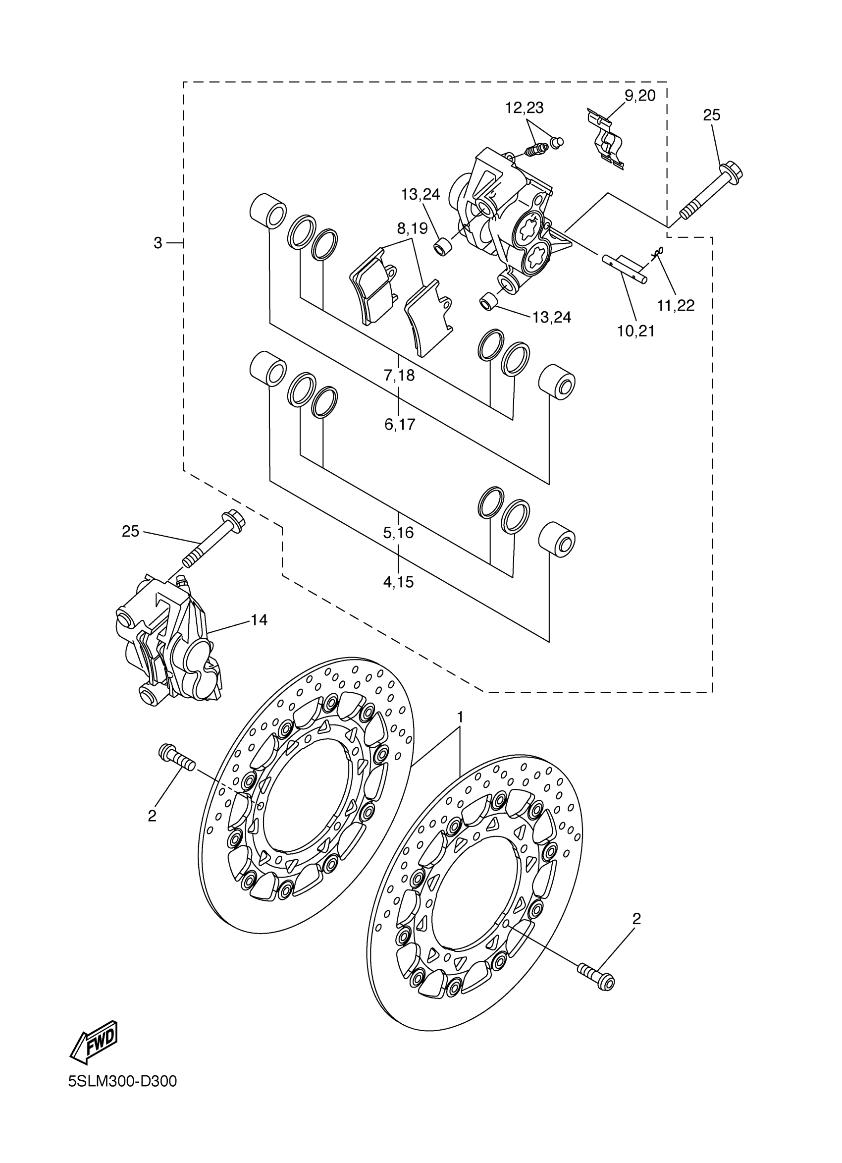 Yamaha YZFR6TC (YZFR6 CA) 5SLS 2005 FRONT BRAKE CALIPER Diagram