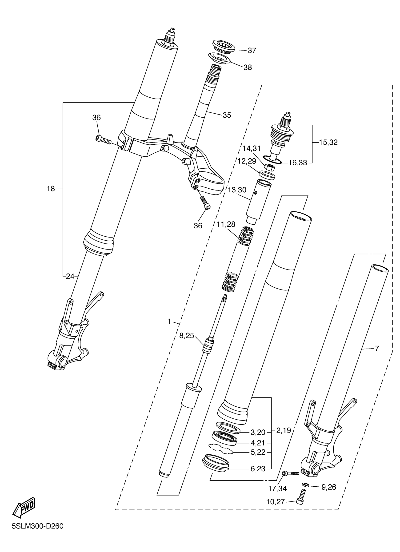 Yamaha YZFR6TC (YZFR6 CA) 5SLS 2005 FRONT FORK Diagram