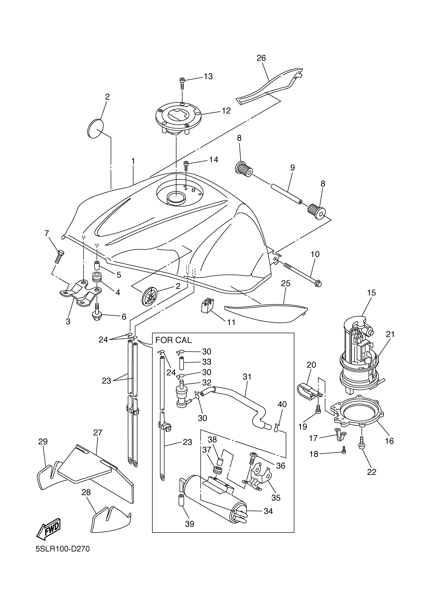 Yamaha YZFR6TC (YZFR6 CA) 5SLS 2005 FUEL TANK Diagram