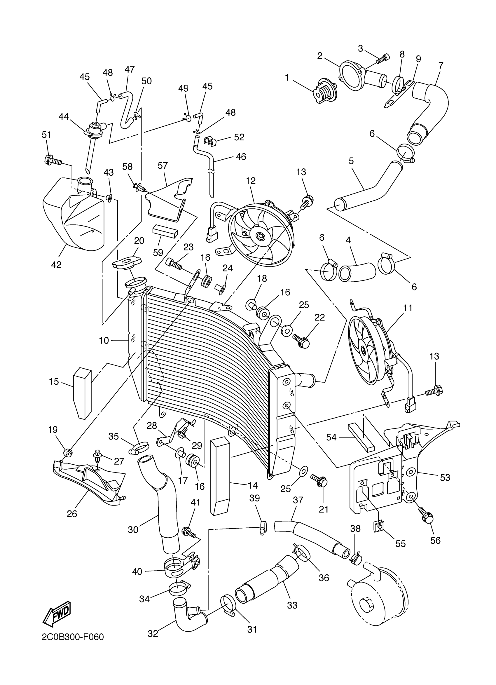 Yamaha YZFR6WC (YZFR6 CA) 2C0G 2007 RADIATOR HOSE Diagram