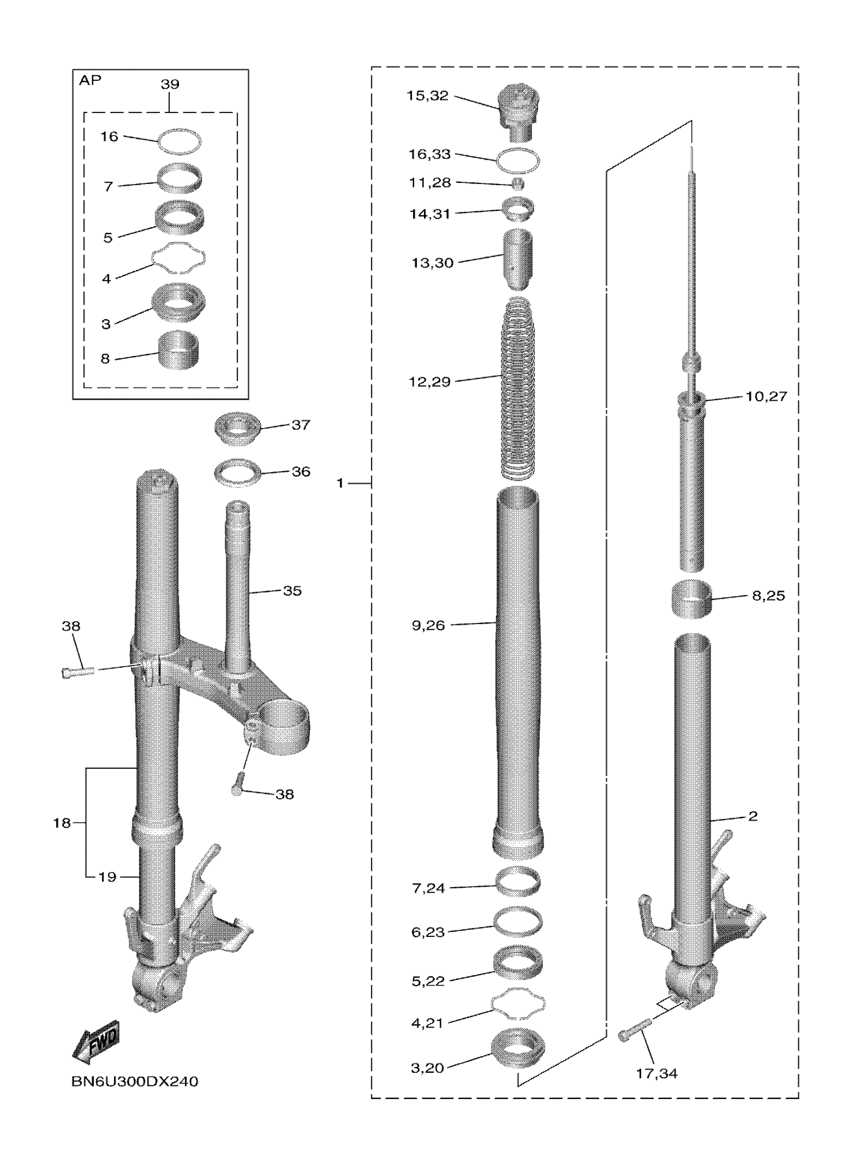 Yamaha YZFR6WPB (YZFR6 RACE) BN6W 2023 FRONT FORK Diagram