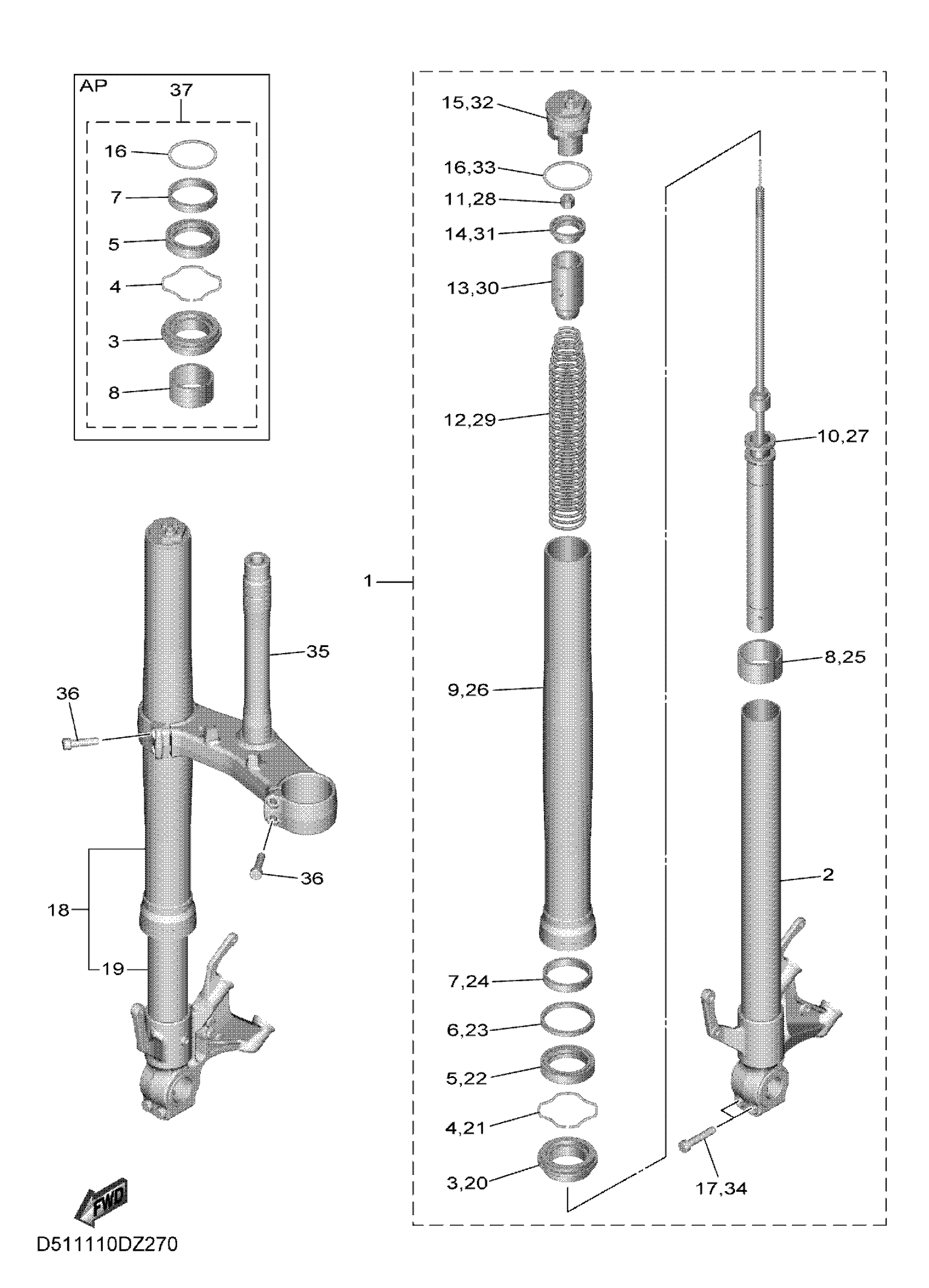 Yamaha YZFR6WRB (YZFR6 RACE) D511 2024 FRONT FORK Diagram