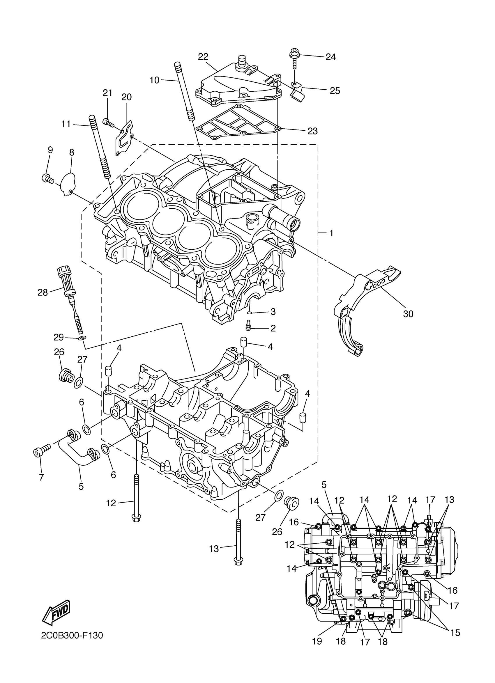 Yamaha YZFR6XY (YZFR6 WITH FLAMES) 13S7 2008 CRANKCASE Diagram