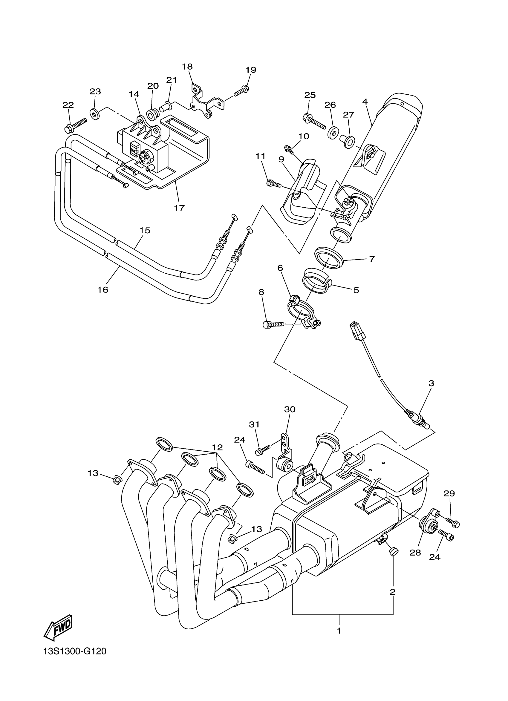 Yamaha YZFR6YW (YZFR6) 13SE1 2009 EXHAUST Diagram