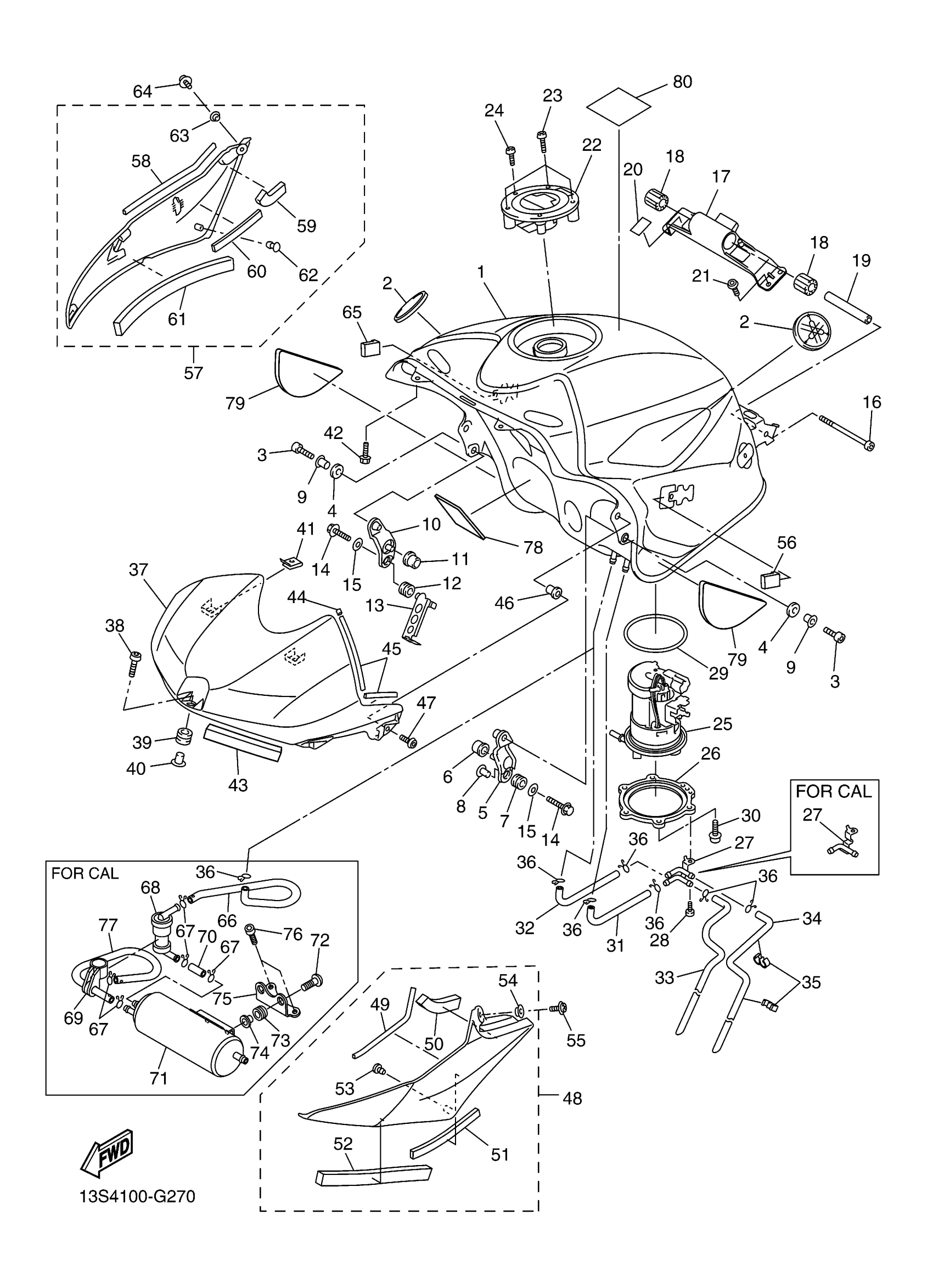 Yamaha YZFR6YW (YZFR6) 13SE1 2009 FUEL TANK Diagram