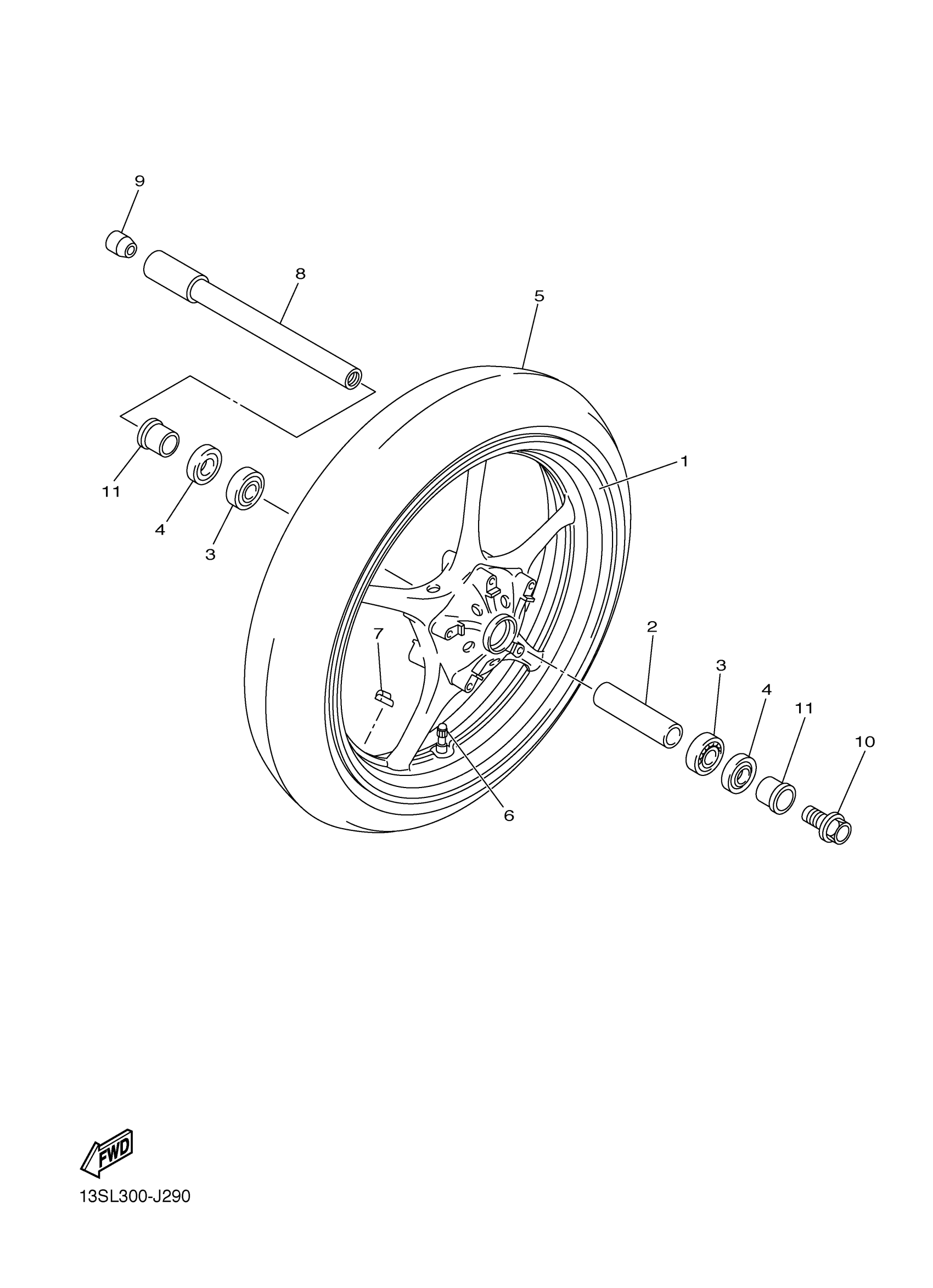 Yamaha YZFR6ZW (YZFR6) 13SR1 2010 FRONT WHEEL Diagram