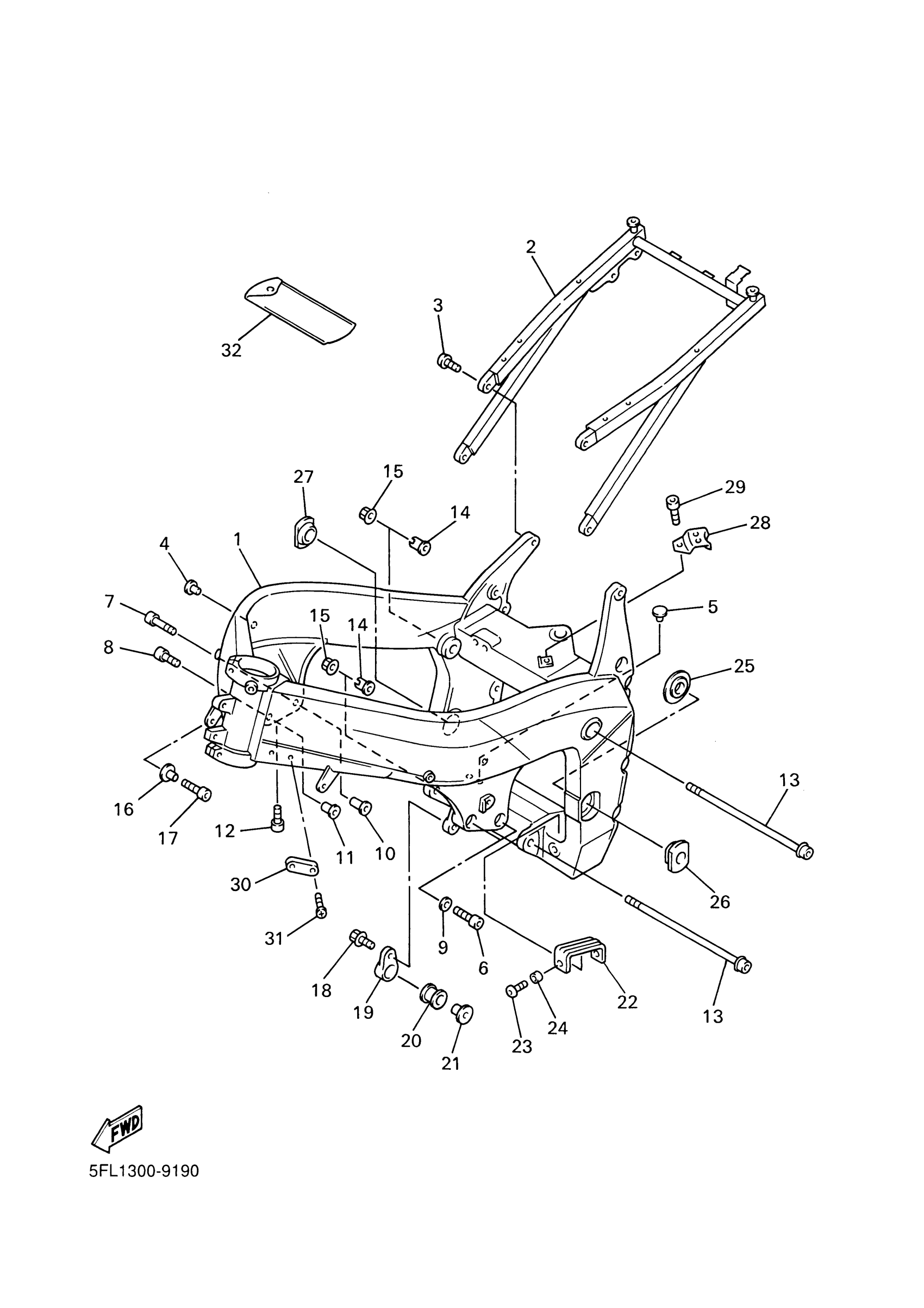 Yamaha YZFR7L (YZFR7) 5FL1 1999 FRAME Diagram