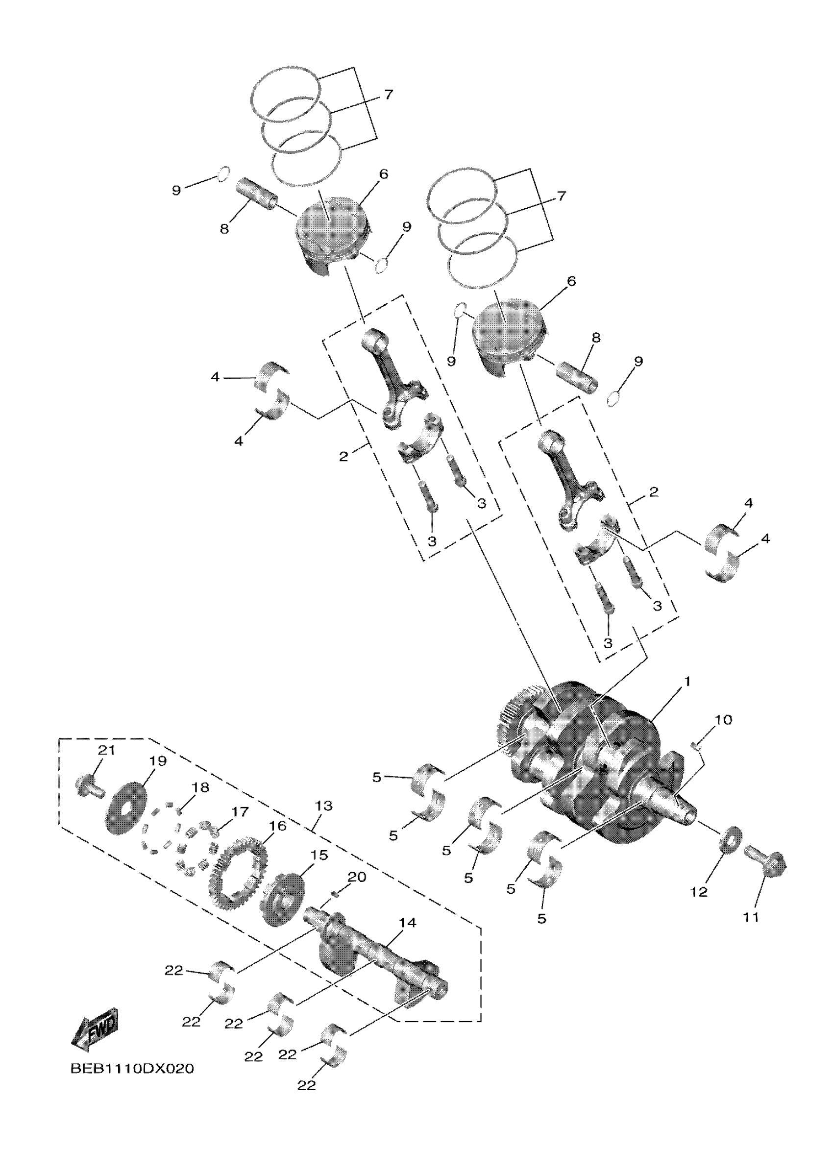 Yamaha YZFR7NL (YZFR7) BEB1 2022 CRANKSHAFT & PISTON Diagram