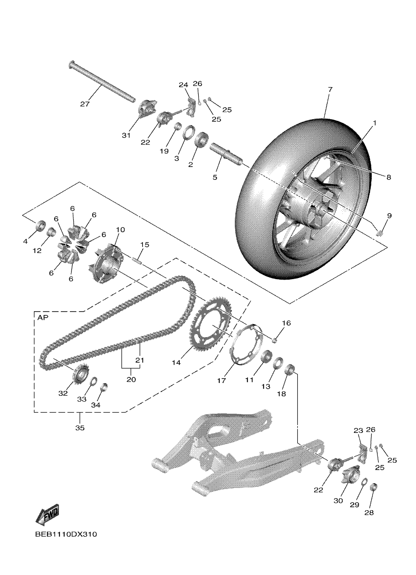 Yamaha YZFR7NW (YZFR7 WGP 60TH) BEBD 2022 REAR WHEEL Diagram