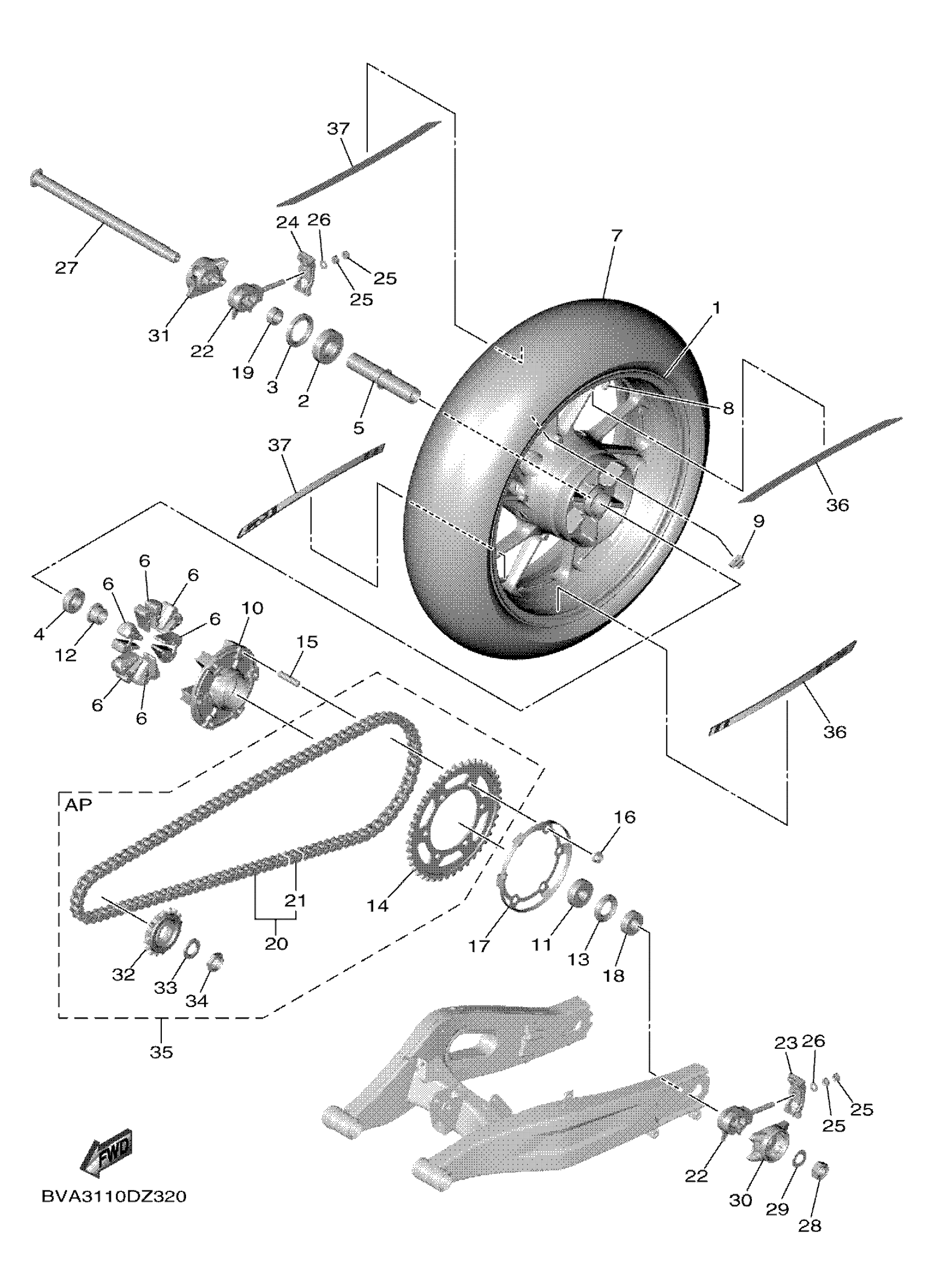 Yamaha YZFR7RL (YZFR7) BVA3 2024 REAR WHEEL Diagram
