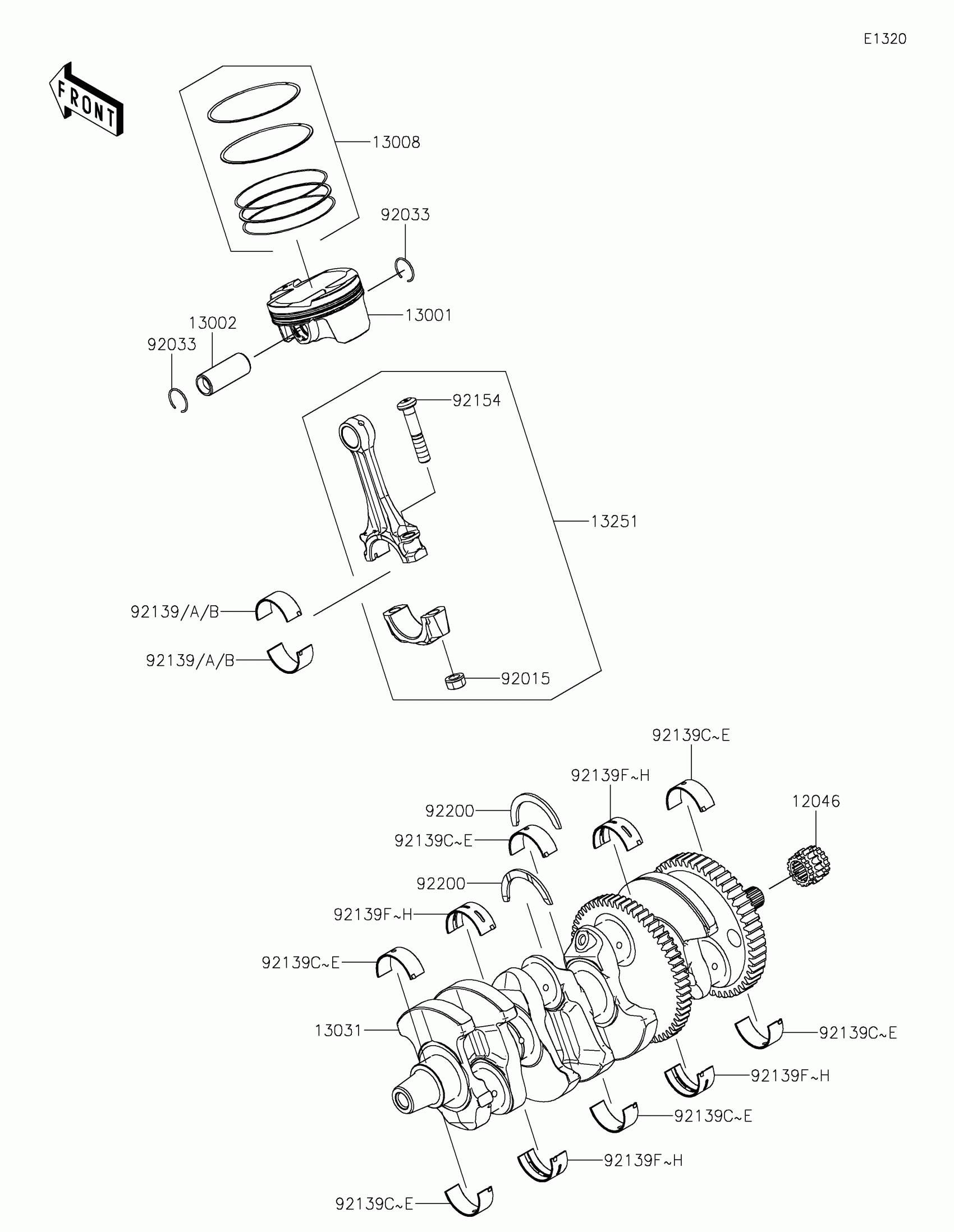 Kawasaki Z H2 SE Crankshaft/Piston(s) Diagram