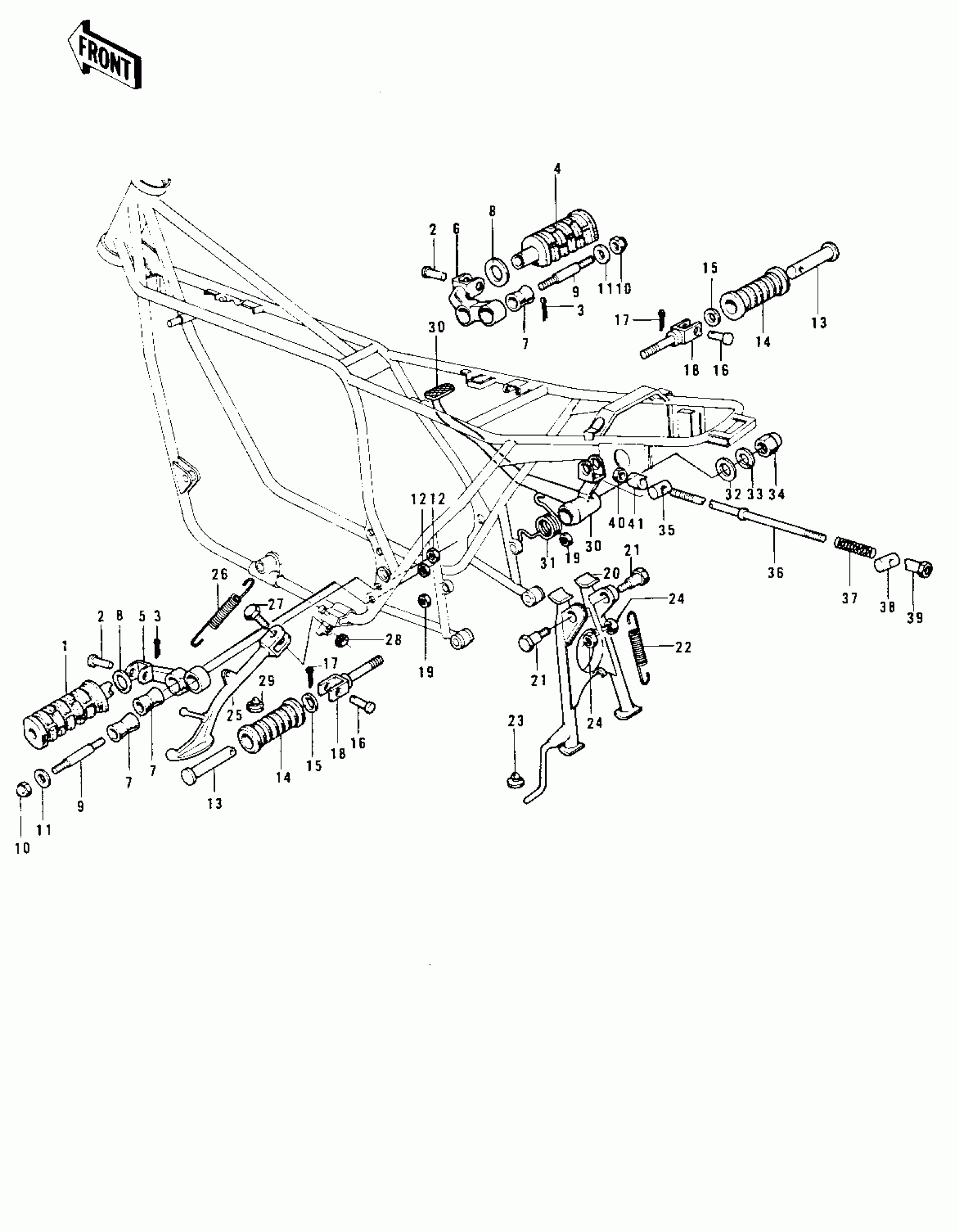 Kawasaki Z1 FOOTRESTS/STANDS/BRAKE PEDAL Diagram