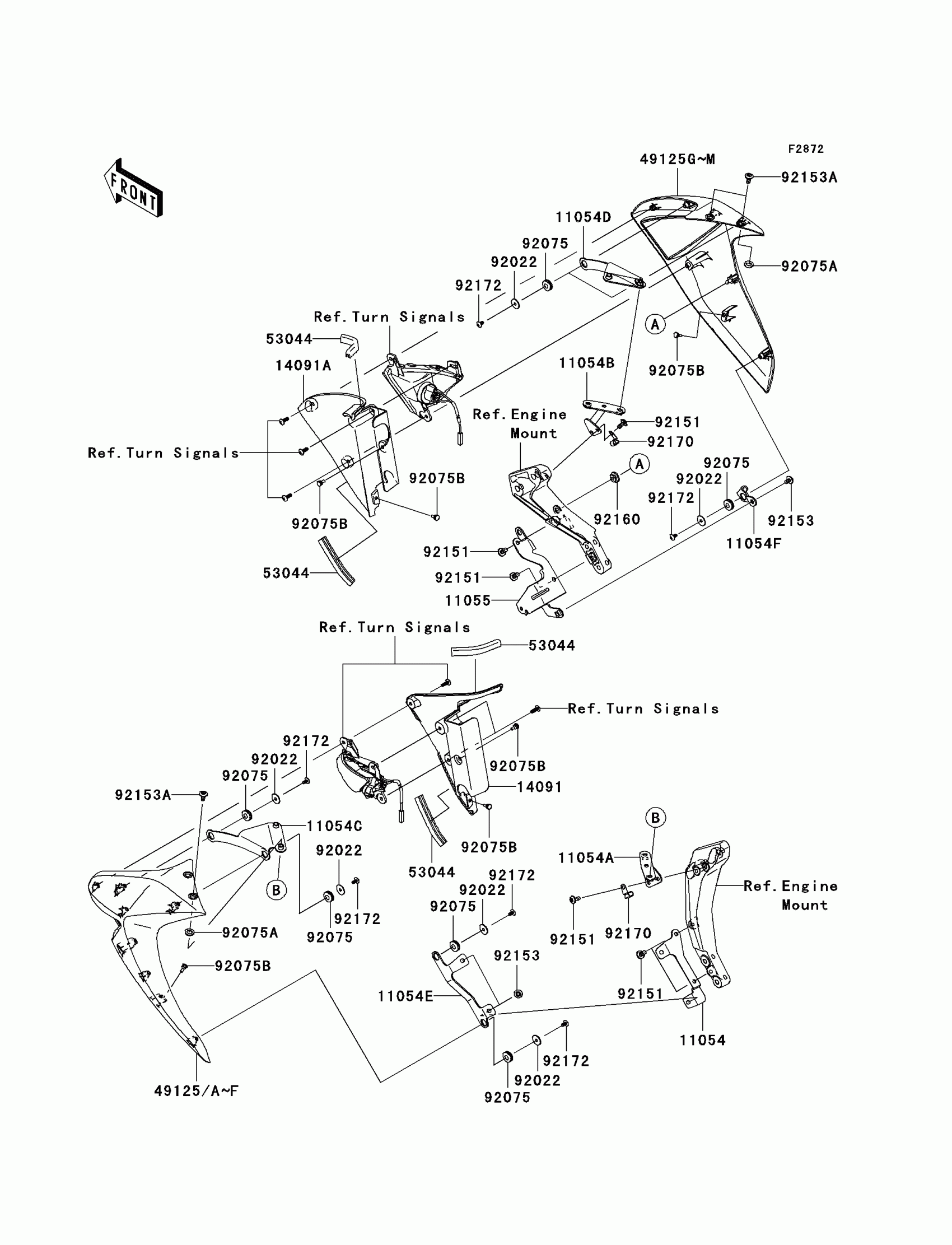 Kawasaki Z1000 (European) Cowling Lowers Diagram