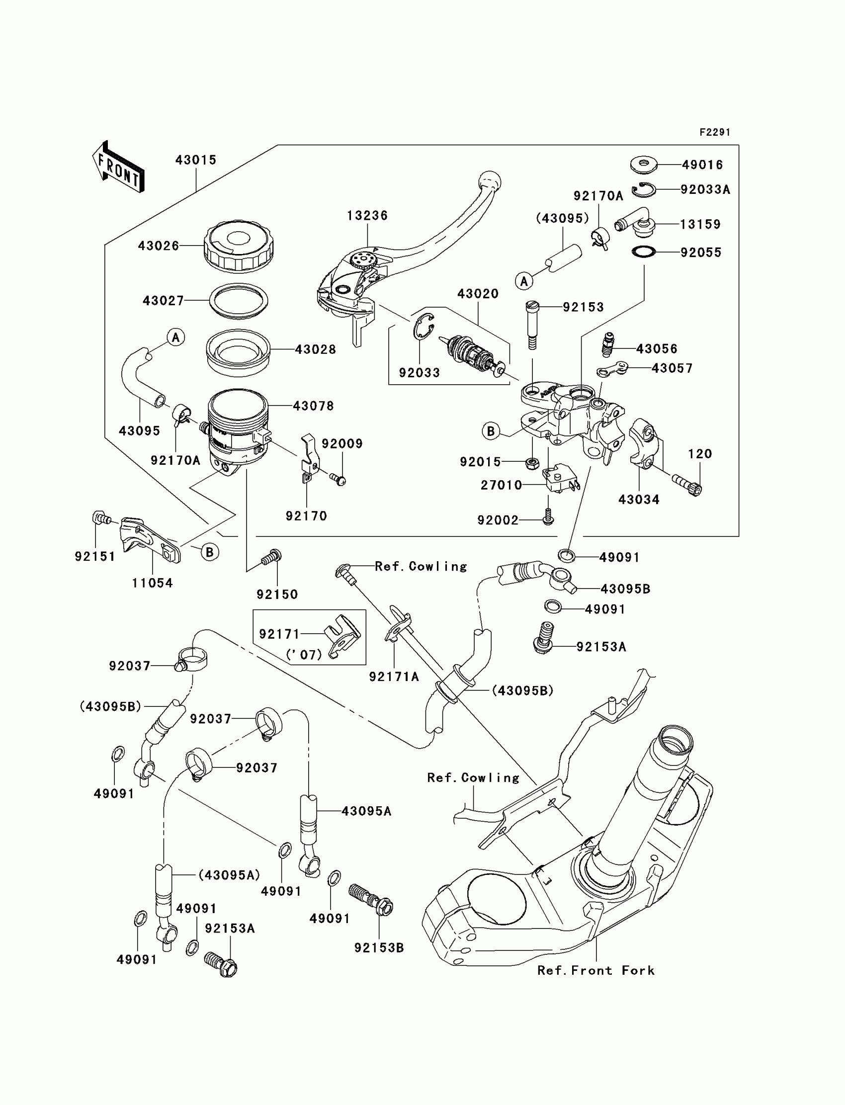 Kawasaki Z1000 (European) Front Master Cylinder Diagram