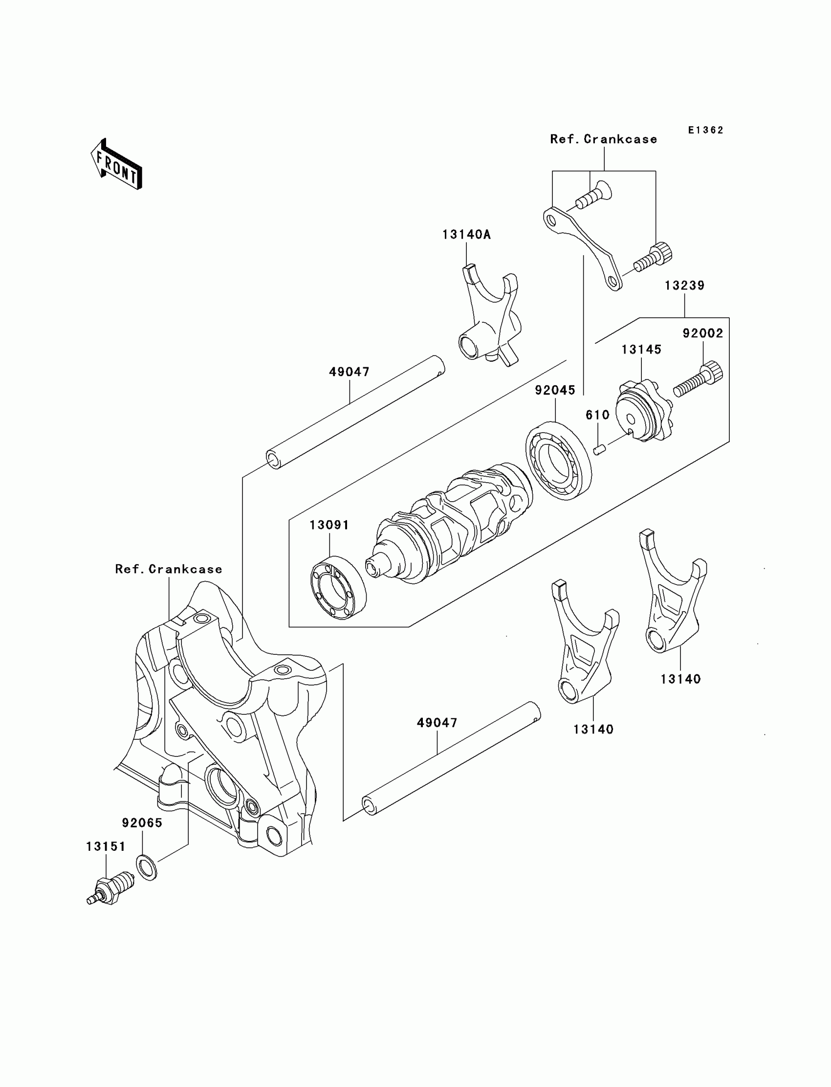 Kawasaki Z1000 (European) Gear Change Drum/Shift Fork(s) Diagram
