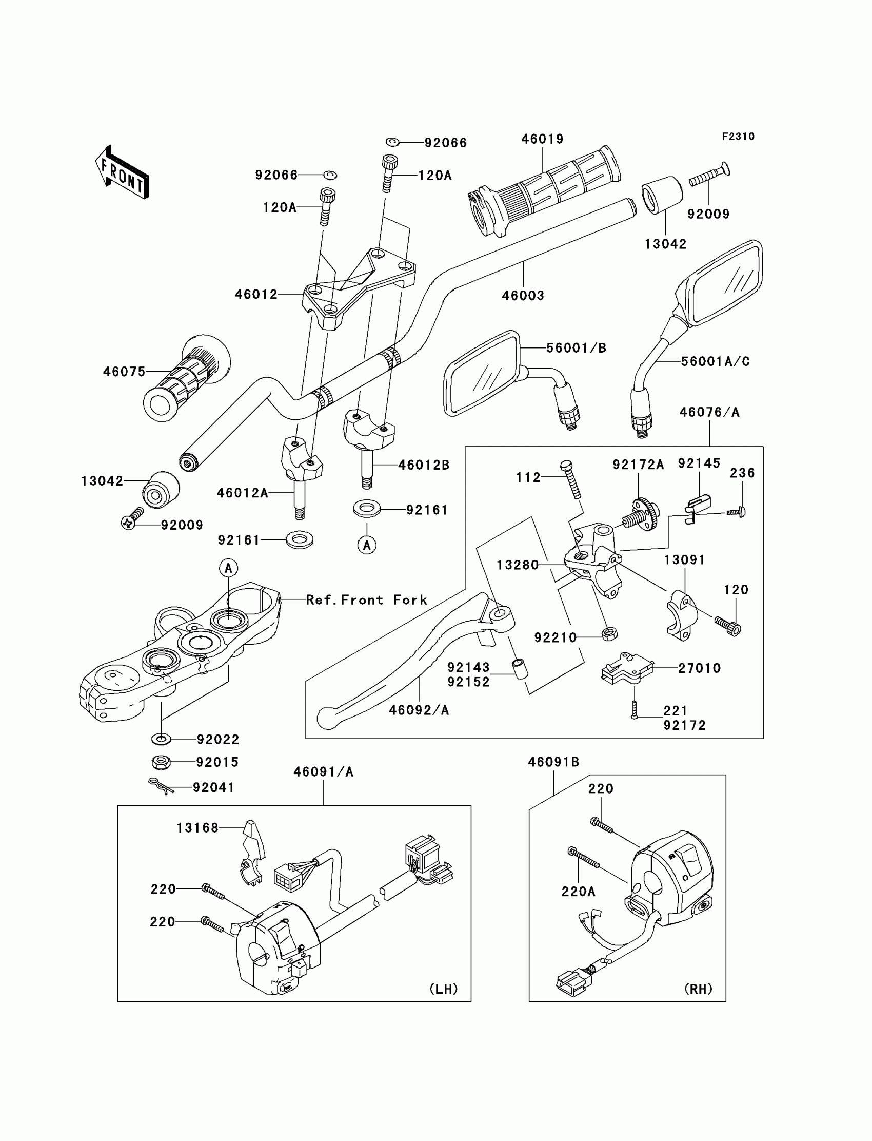 Kawasaki Z1000 (European) Handlebar Diagram