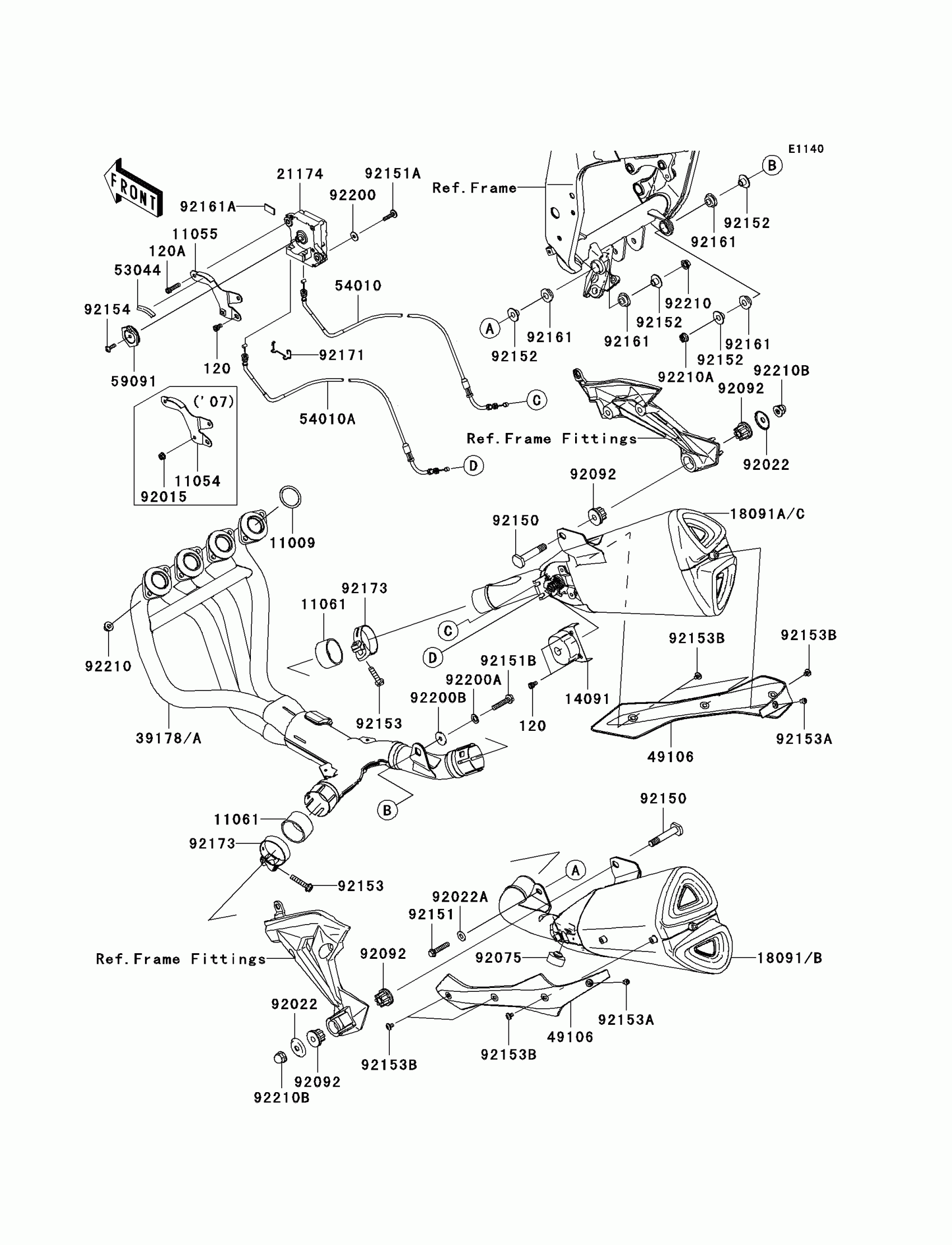 Kawasaki Z1000 (European) Muffler(s) Diagram