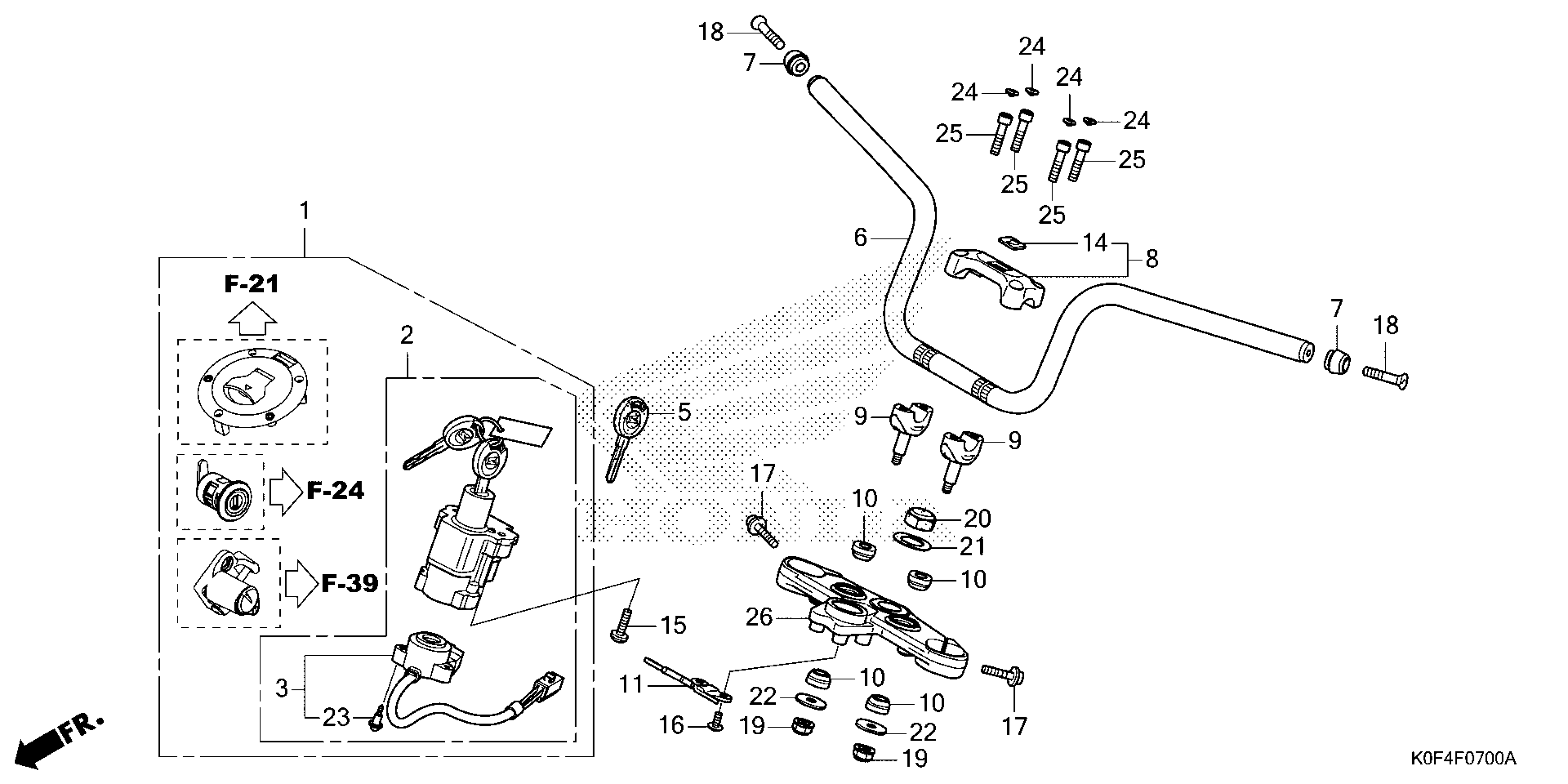 Honda Z125MAAC (21) MOTORCYCLE, THA, VIN# MLHJB025-M5200001 HANDLEBAR Diagram